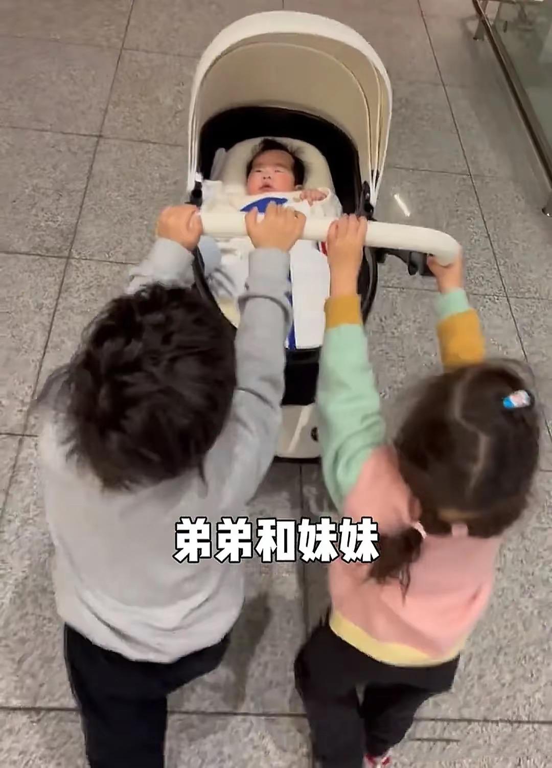 小龍珠躺在嬰兒車裏,也很乖,弟弟妹妹都幫忙推嬰兒車。杜星霖也很難得休息了一下,孩子們都可以幫媽媽照顧妹妹了。