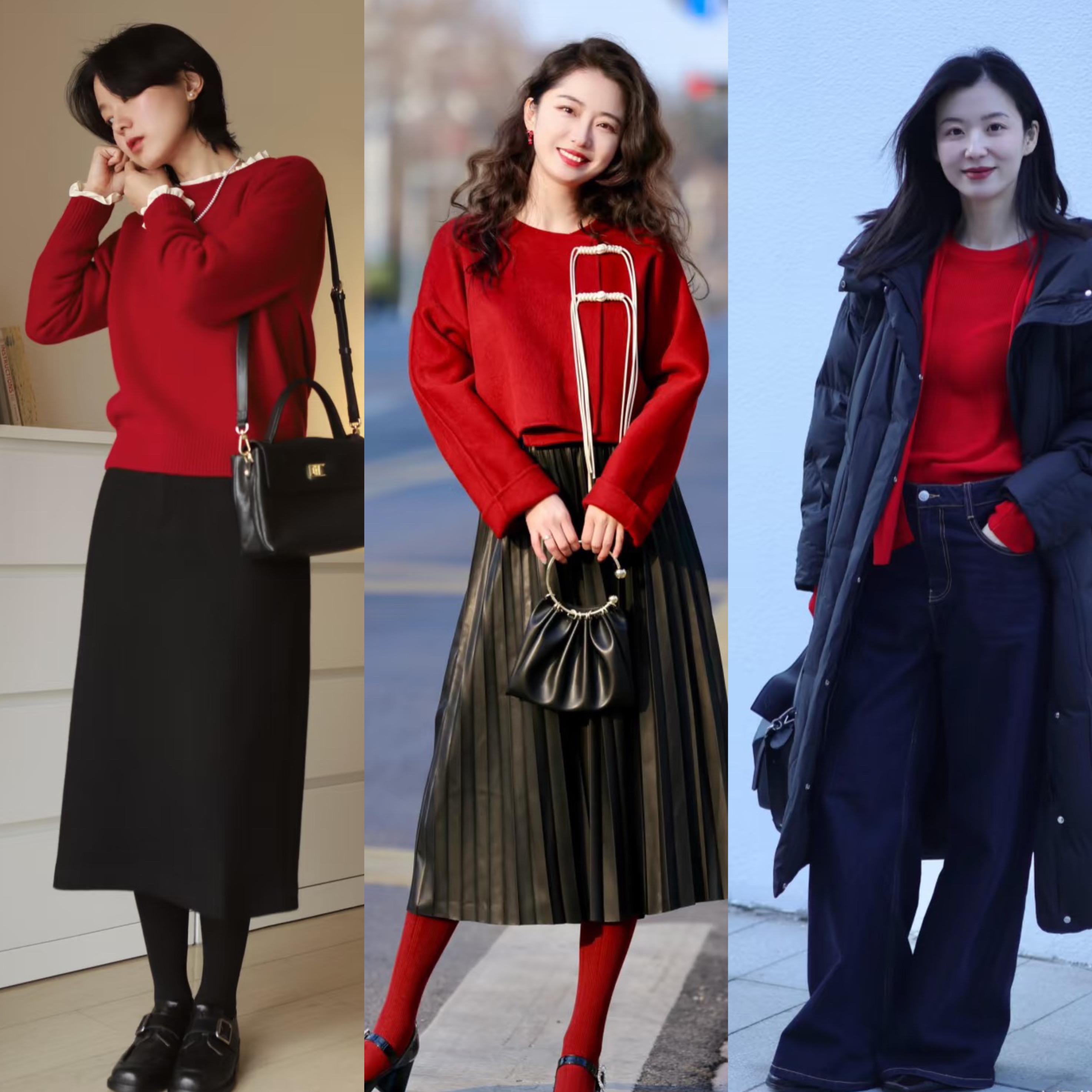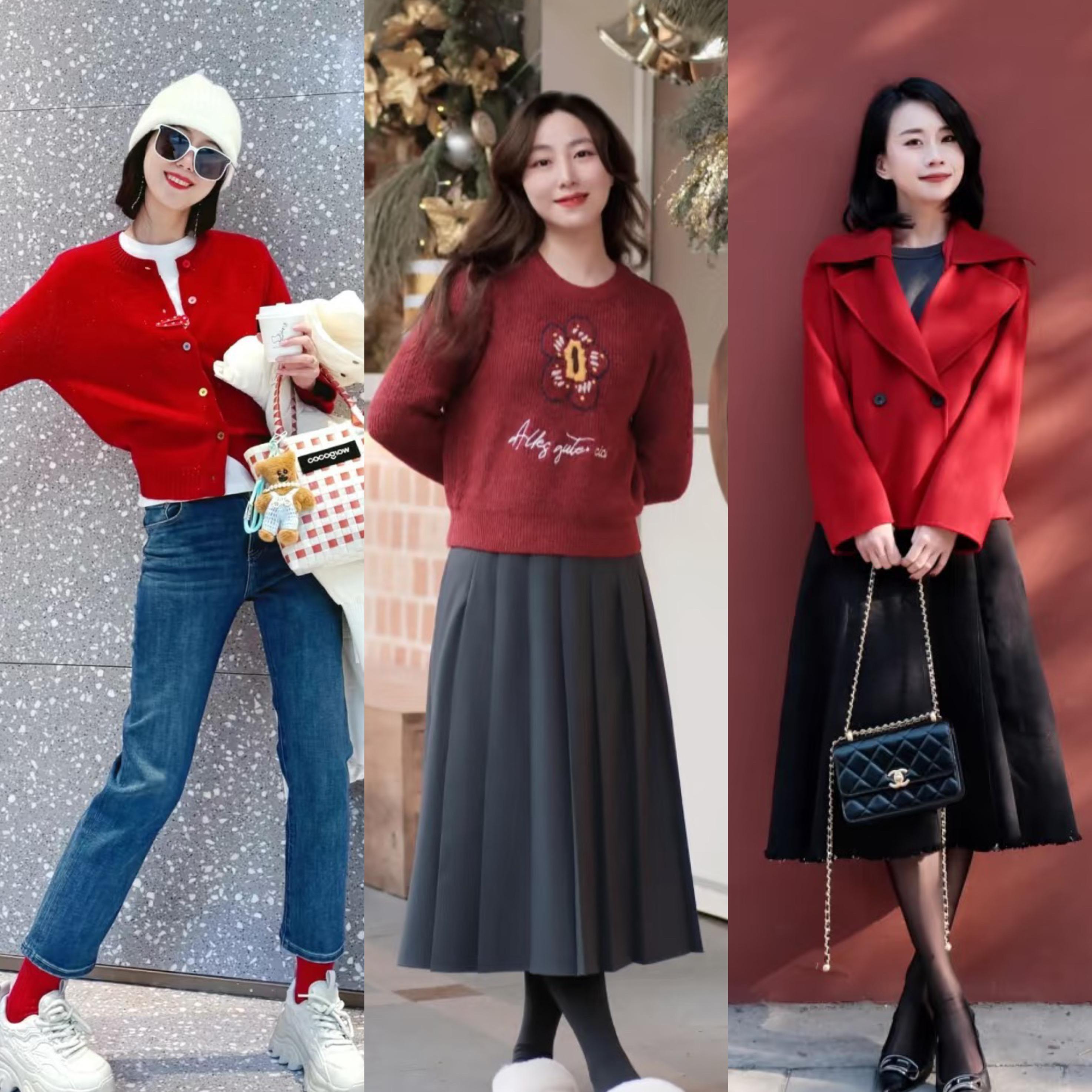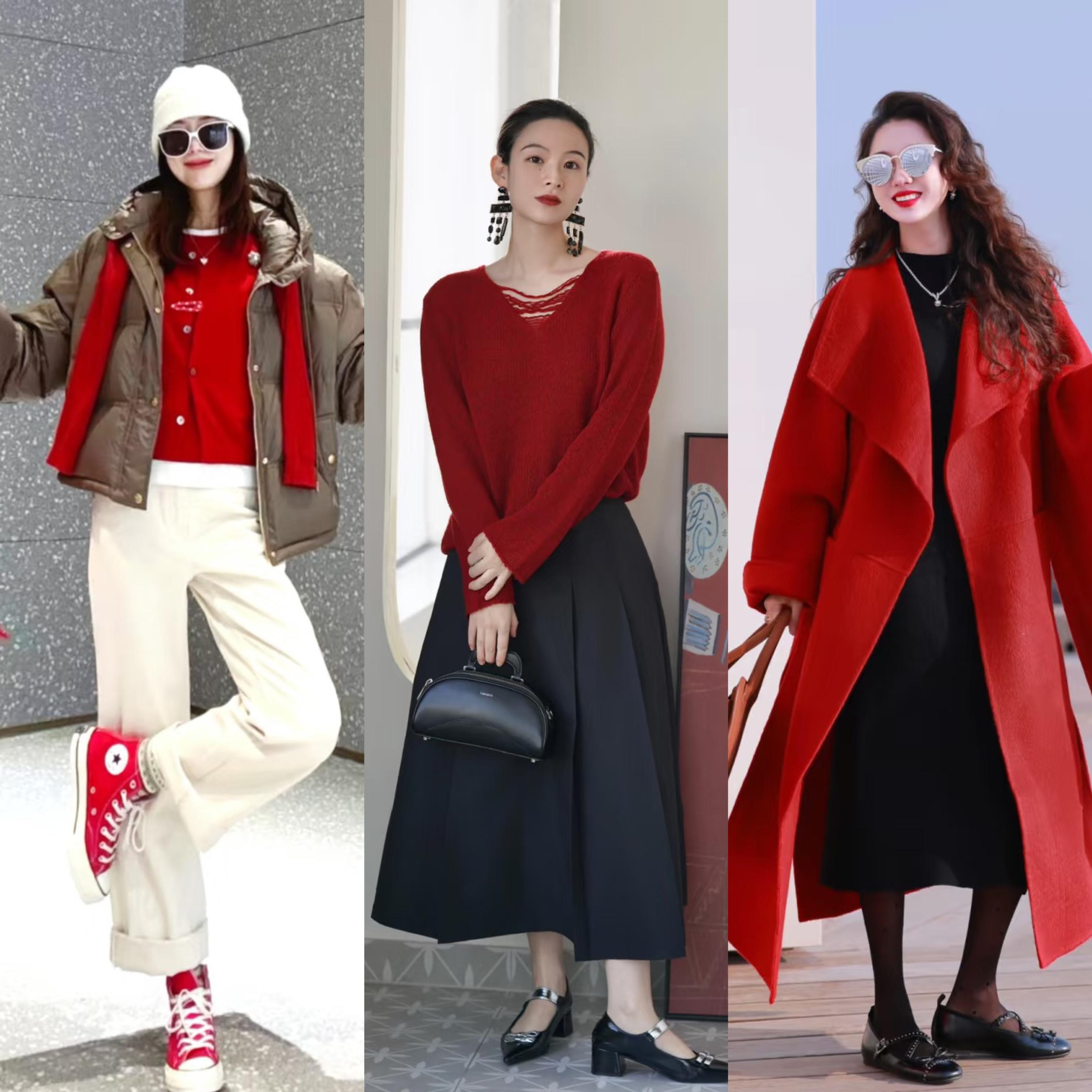 新年的氛圍感,一定是紅色系給的。這紅色系一上身,新年的氛圍感不就來了嗎?那歡樂、喜慶,自然的流露。
