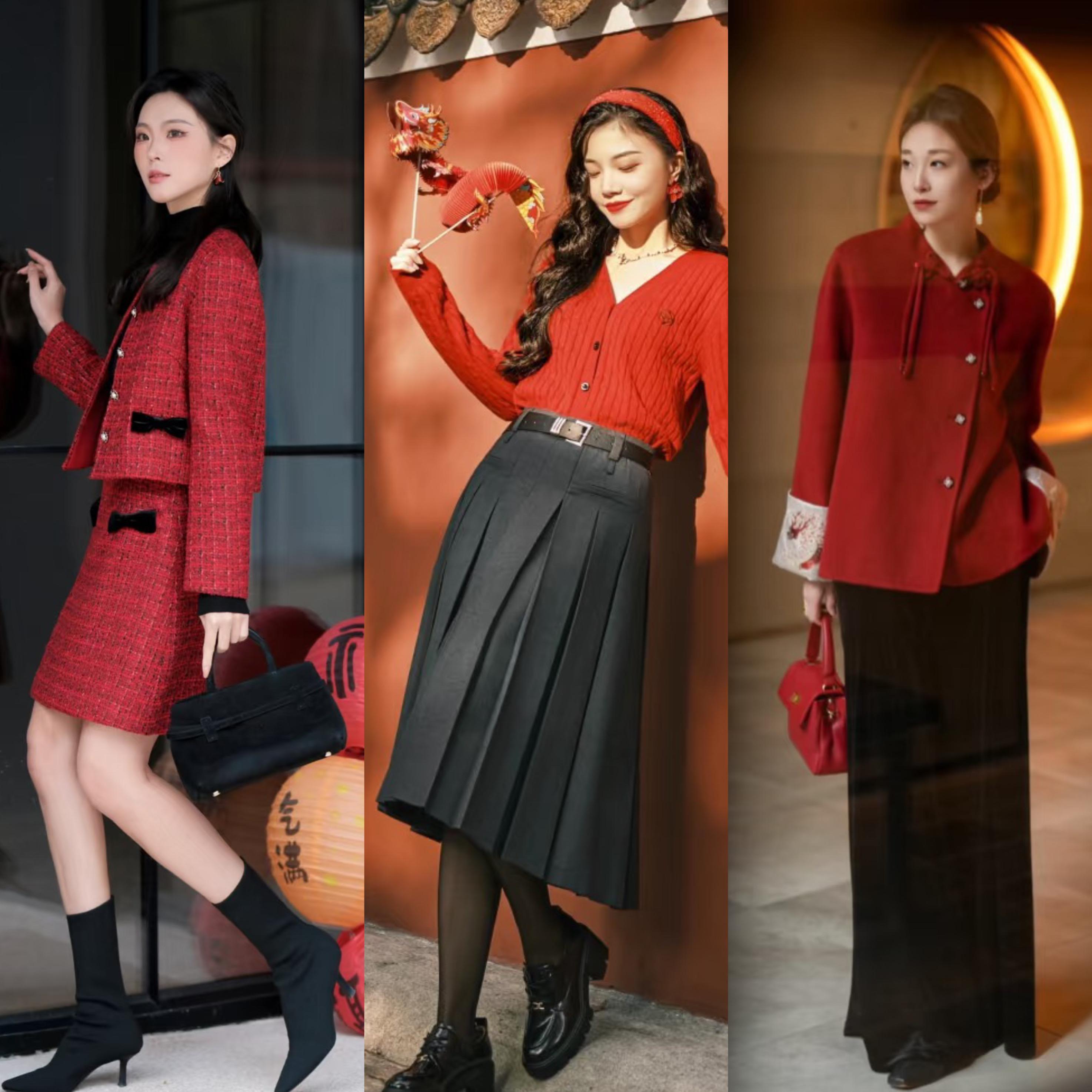 針織衫的低調溫柔、套裝的利落考究、以及毛呢外套的體面大方,遇上紅色系的時髦喜慶,都可以洋溢着時尚的風采。