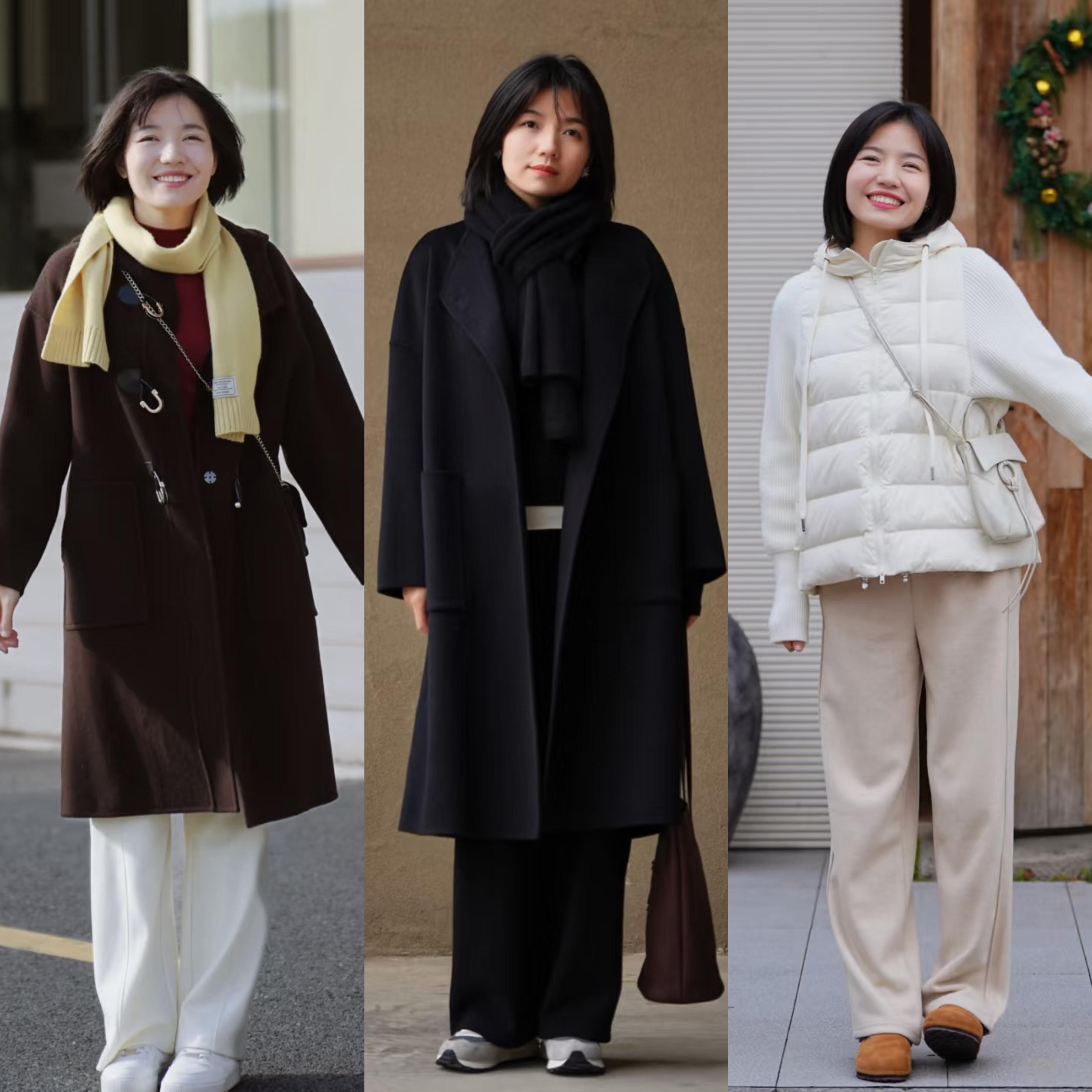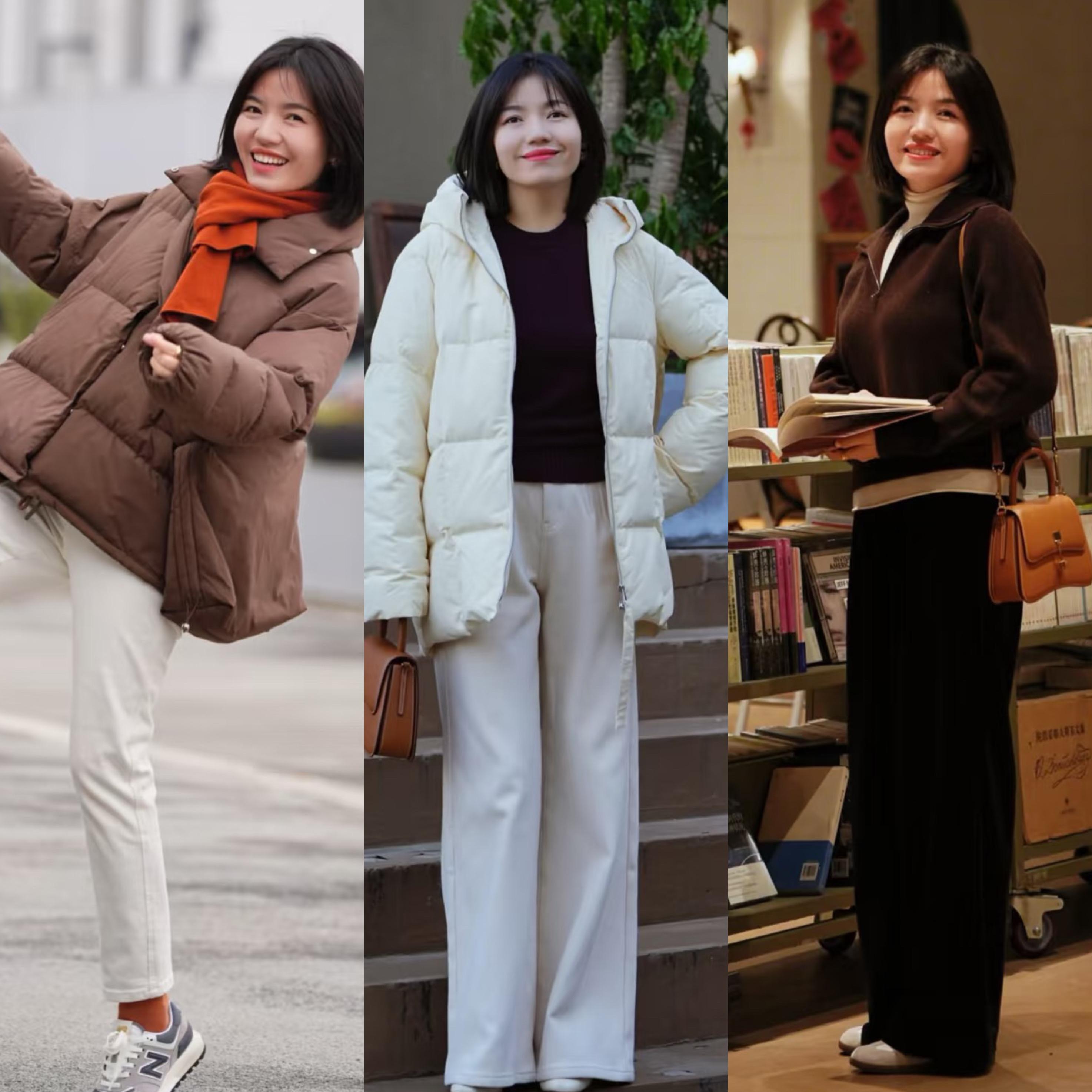 短款羽絨服,最好選擇過腰遮胯的長度,簡約又顯氣質。高腰的直筒褲、配上加絨的款式,很舒適也顯瘦。白色的直筒褲,簡潔又高級。
