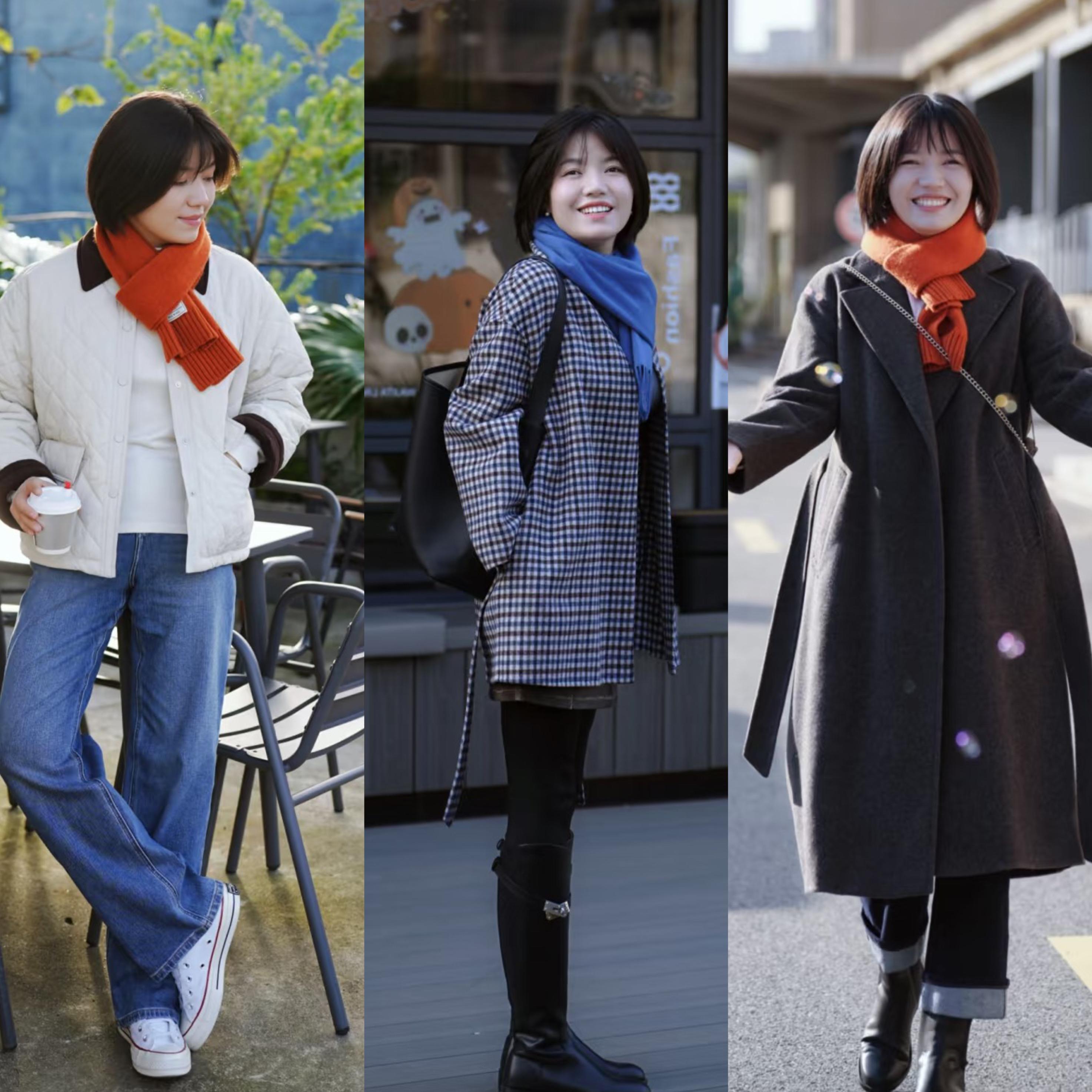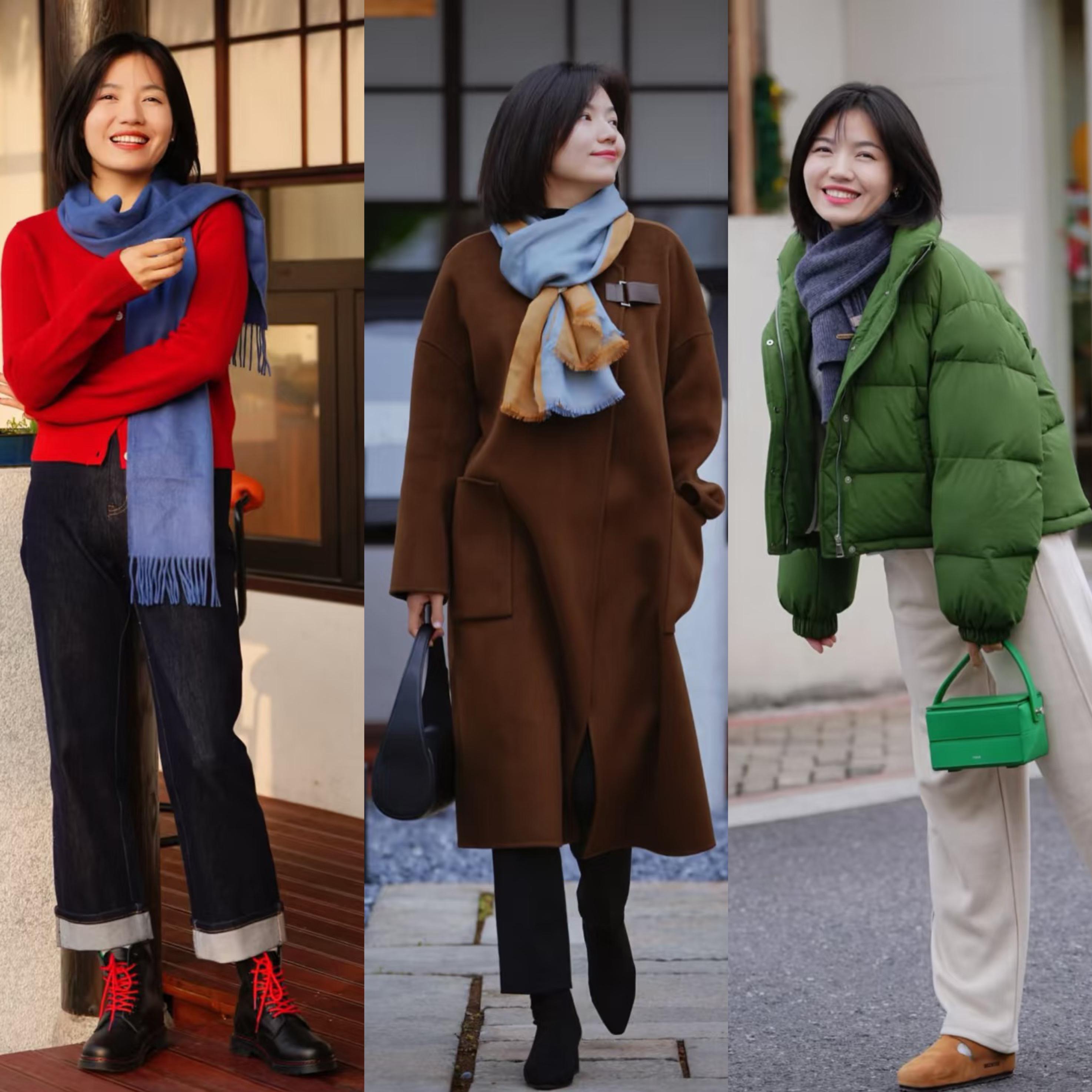 一條明亮色的圍巾,可以打破平靜穿搭裏的陰霾。穿着一身暗色系,配上亮橘色或者克萊因藍的圍巾,都可以更時髦醒目。