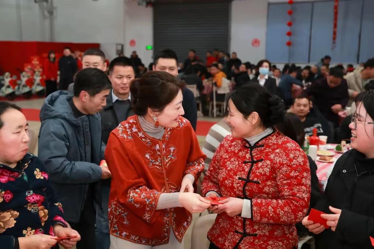 宗馥莉現身公司年會,她穿紅色唐裝好喜慶,給員工發紅包、分房子