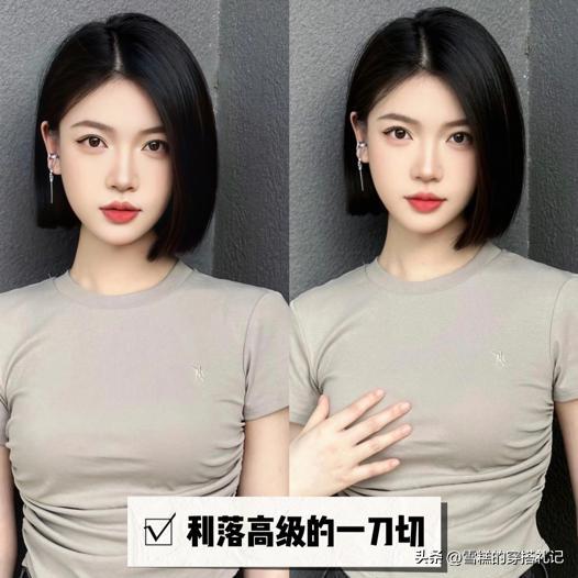 如果你更喜歡運用短髮髮型的話,那麼建議大家首選還是要考慮一刀切以及齊肩發這兩款,整體出現出來的利落感也是非常明顯的,而且短髮元素針對於我們的臉型和五官有着針對性的優化效果。對於五官狀態比較立體以及分佈的比較和諧的女性來說真的很適用。