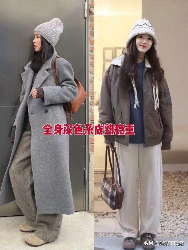 當整體的配色以深色爲主時,能夠更好地營造出成熟穩重的感覺。比如深色系的大衣,自帶高級與溫暖,隨便搭配一條淺色的小白褲或者卡其褲,看着更加成熟穩重,遠比一身黑色或者深灰色更加有層次!