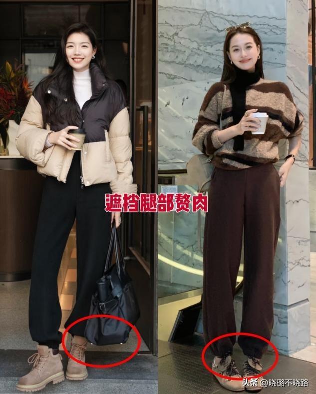 大腿粗以及小腿外翻的女人,穿緊身的褲子,或者直筒的褲子有些顯胖顯矮,大家建議大家都試試這種束腳的運動褲,褲筒寬鬆可以遮擋住大腿的肉肉,靠近小腿的位置做了收緊的設計,上寬下窄的版型可以完美修飾腿部問題,讓人看起來更加高級纖細。