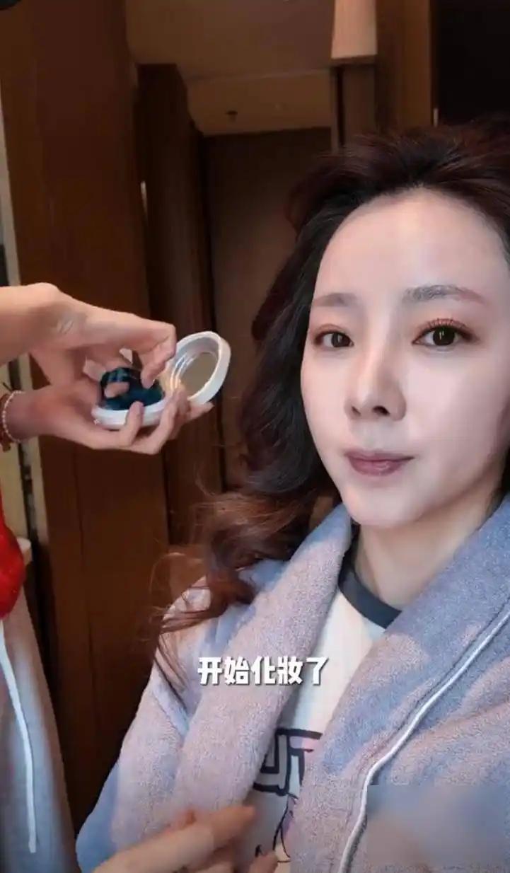 主持前,還是最基本的上妝、換裝環節。李思思的皮膚是真的好呀,說是化妝不過就是略施粉黛。
