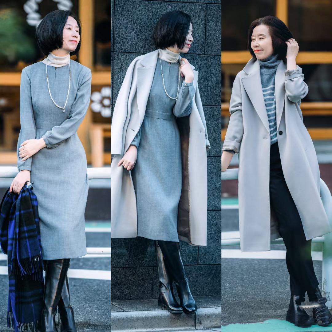 漆皮的長靴,與連衣裙也更配。如果是身材苗條的阿姨,完全可以嘗試搭配修身的連衣裙,修身連衣裙配珍珠項鍊很優雅。