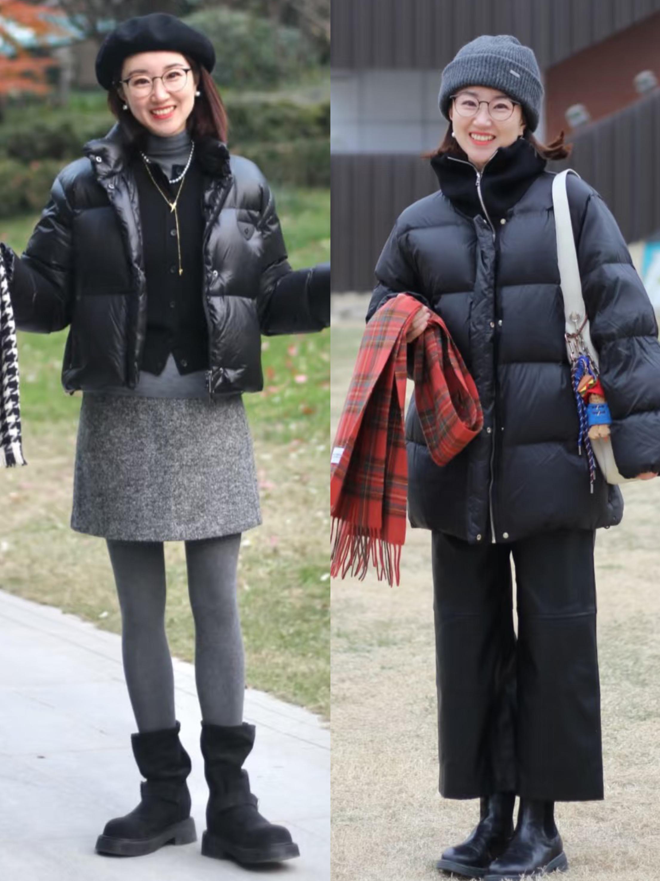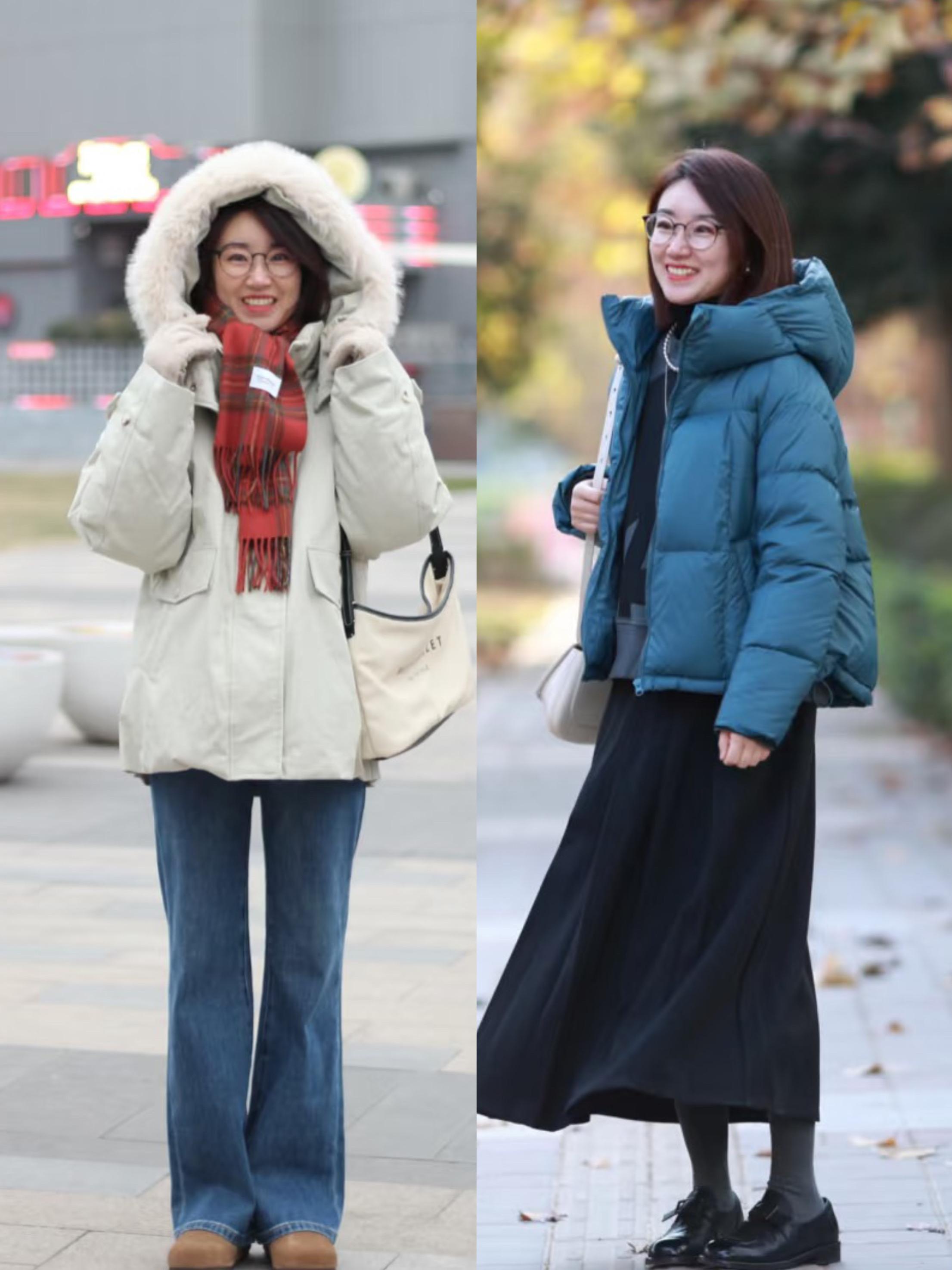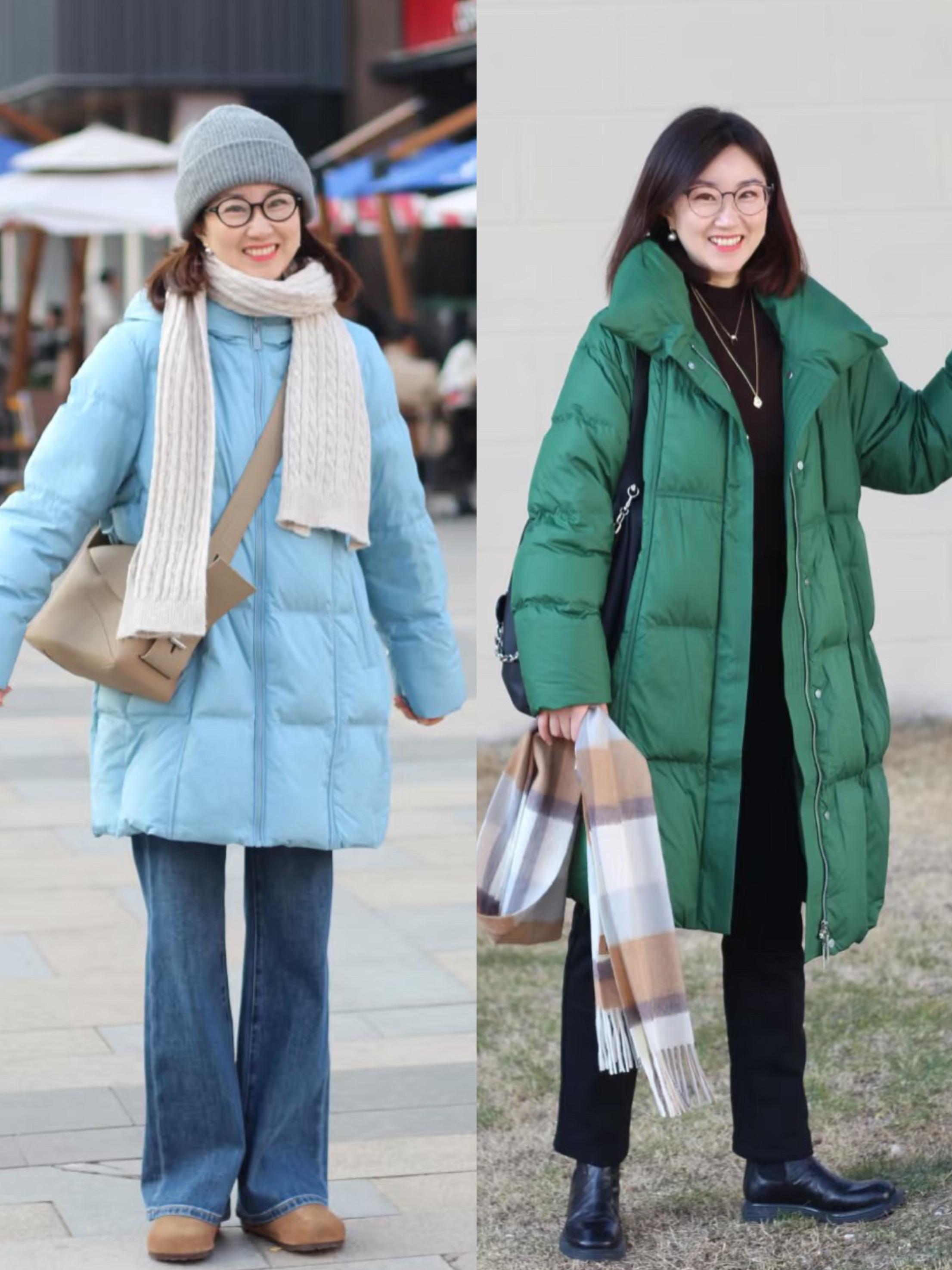 比如短款且厚實的羽絨服,或者厚實防風的派克服,都可以讓我們的穿搭更簡約顯氣質。孔雀藍的羽絨服,高腰的A字裙,溫柔又顯氣質。
