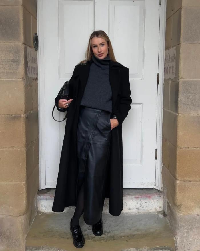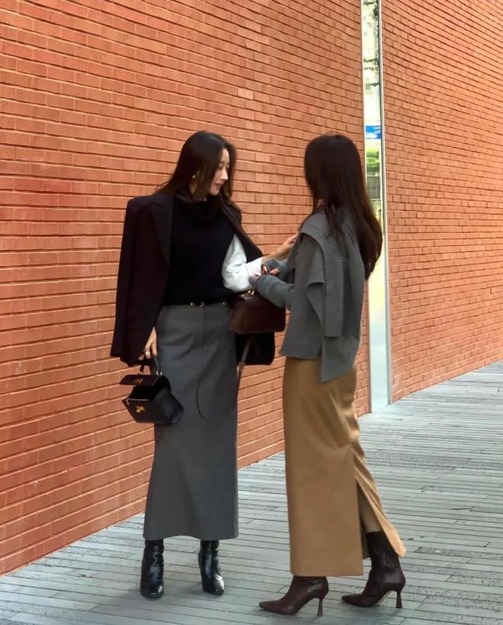 這種半身直筒長裙,穿起來不僅能很好修飾整個身材比例,還非常顯瘦,能展現出優雅感,配上一雙幹練的短靴,很好兼顧了溫柔和酷感,整個人瞧着就非常有氣質的。如果你是小個子,覺得穿這種裙子會壓低個子,那麼就提高腰線比例,例如增加一根腰帶,顯瘦的同時又顯高顯腿長。▼