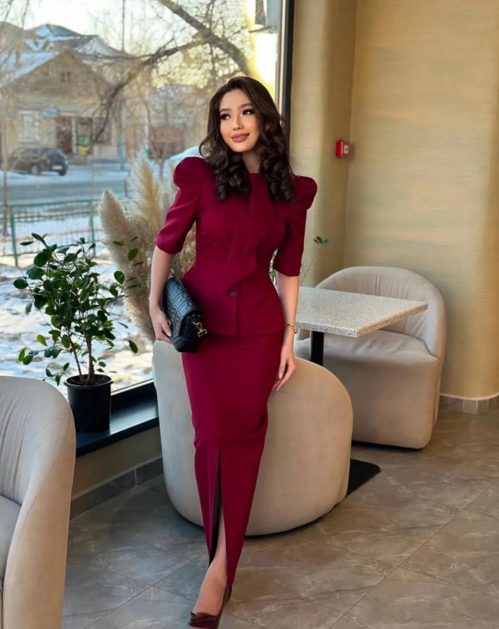 很不失職業風格的一套,這也是能很好展現出都市女性魅力的穿搭,通勤與氣質的呈現,再配上一條溫柔的裙子,時尚又不失氣質,腳上踩着一雙尖頭高跟鞋,很好將精緻與高級感融入其中,優雅且貴氣。▼