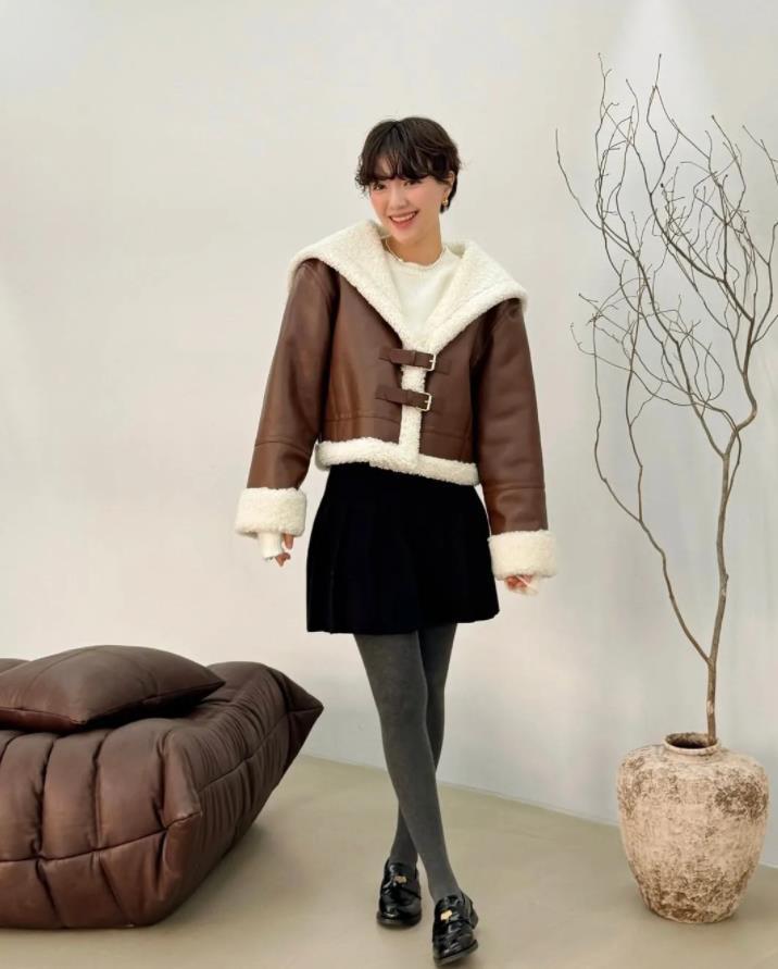 樂福鞋這雙單鞋好像每一個春夏季節都會流行,所以,到了2025年也是依舊不會變,這麼一雙鞋子穿起來很舒適自在,也非常減齡,是打造學院風最不錯的選擇,即便是在冬天也是可以穿得,皮毛一體的外套配超短裙子,再配上一條打底褲,整個着裝都洋溢着青春與活力。▼
