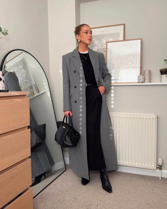 大衣這樣的單品可是專屬於秋冬季節的,如果你不喜歡穿黑色大衣,那麼就選擇灰色大衣吧,特別是這種長款的灰色長大衣,敞開來穿整個人的氣場都會提升起來,加上直筒的版型,很好對身材進行了修飾,也緩解了大衣帶來的厚重感,配上一雙黑色短靴,整個穿搭不僅顯氣質還不失優雅與幹練。▼