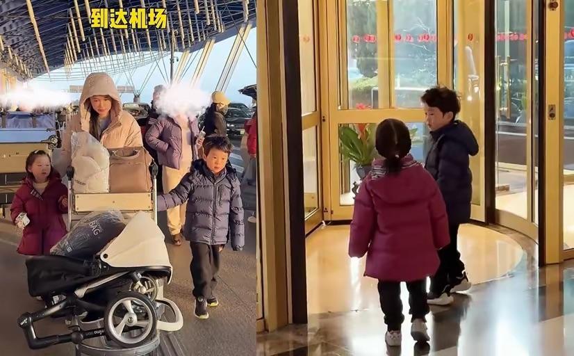 她手持了很多行李,帶上三個孩子,就出發了。不知道爲什麼她沒有帶自己的大兒子,大兒子是杜星霖婚前買精生的兒子,與張紀中沒有親緣關係。