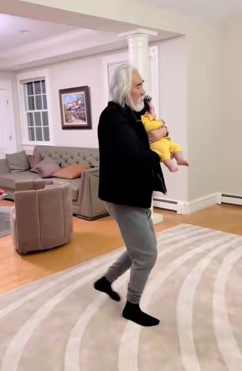 73歲張紀中在美國豪宅帶娃,他穿秋褲跳華爾茲,網友:這爺爺太萌