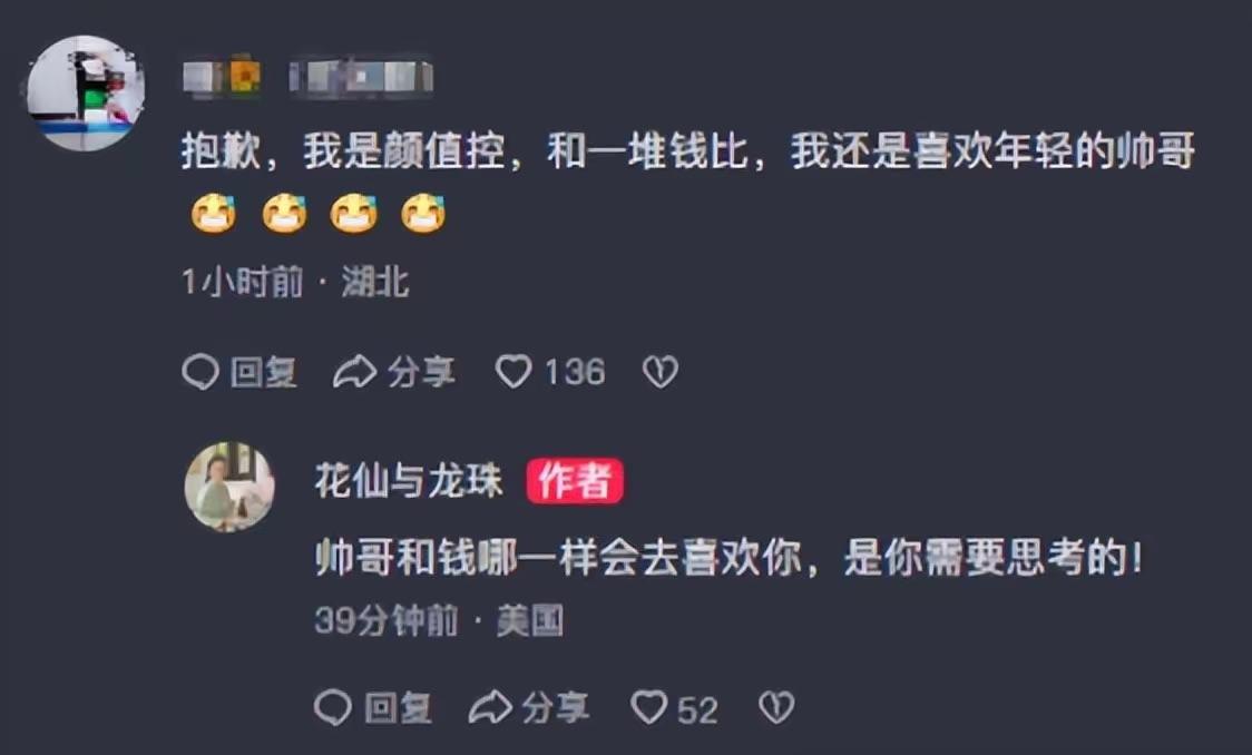 也有網友說,抱歉我是顏值控,和一堆錢比,我還是喜歡年輕帥哥。杜星霖問,帥哥和錢哪一樣會去喜歡你,是你需要思考的。
