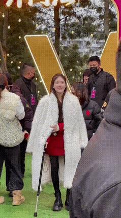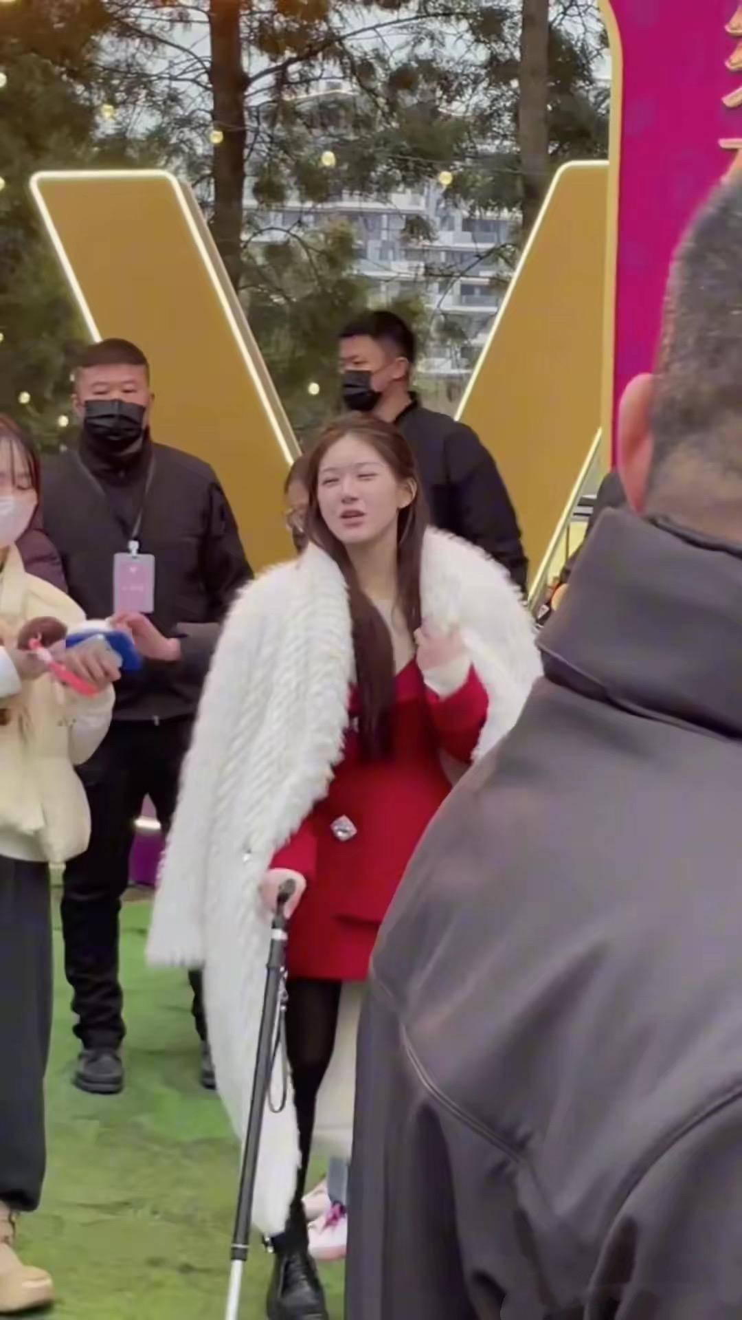 在成都舉辦的首屆“唯怡開門紅•春節歡聚百人宴”活動上。趙露思拄着柺杖出場,並且在現場親切的飛吻、和粉絲互動,她看起來狀態不錯,只是臉上有一種大病初癒的蒼白。