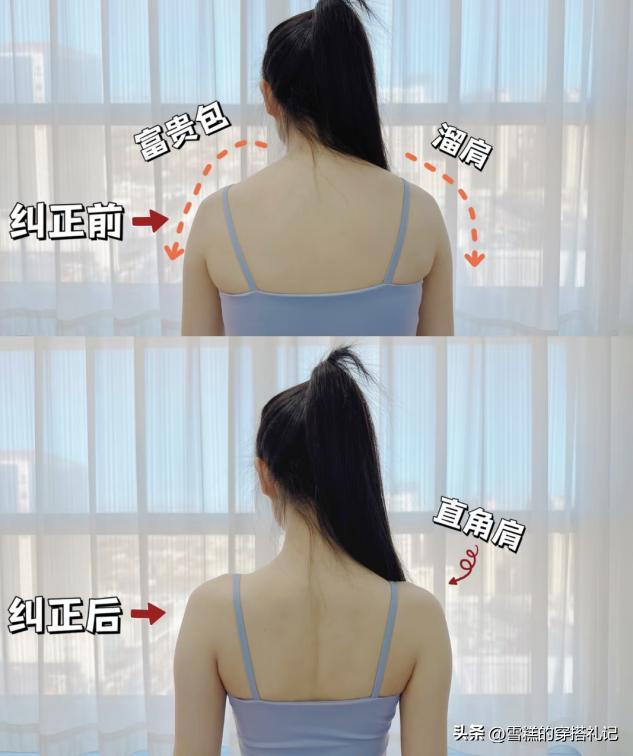 當你的體態崩了之後,身上會有很多缺點,一不小心就會將這些缺點暴露在人前,比如虎背熊腰的女人穿露肩的服裝,反而會加劇缺點,所以大家一定要注意服裝的做工和剪裁,用大領口的剪裁設計放大修飾效果,讓自己的肩背看起來更加挺直。