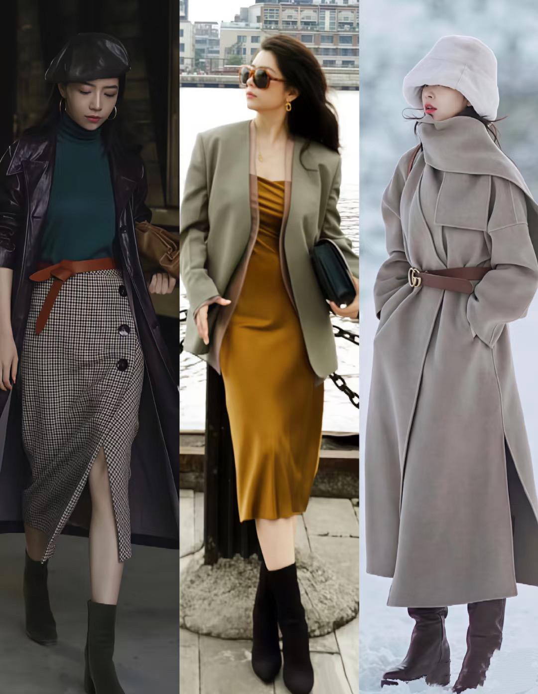 越是大女人風格的穿搭,越少不了這些元素的修飾。中和那種強勢與冷冽,增加溫柔靜謐的氛圍,配上條紋披肩、窄款的腰帶,優雅又顯氣質。
