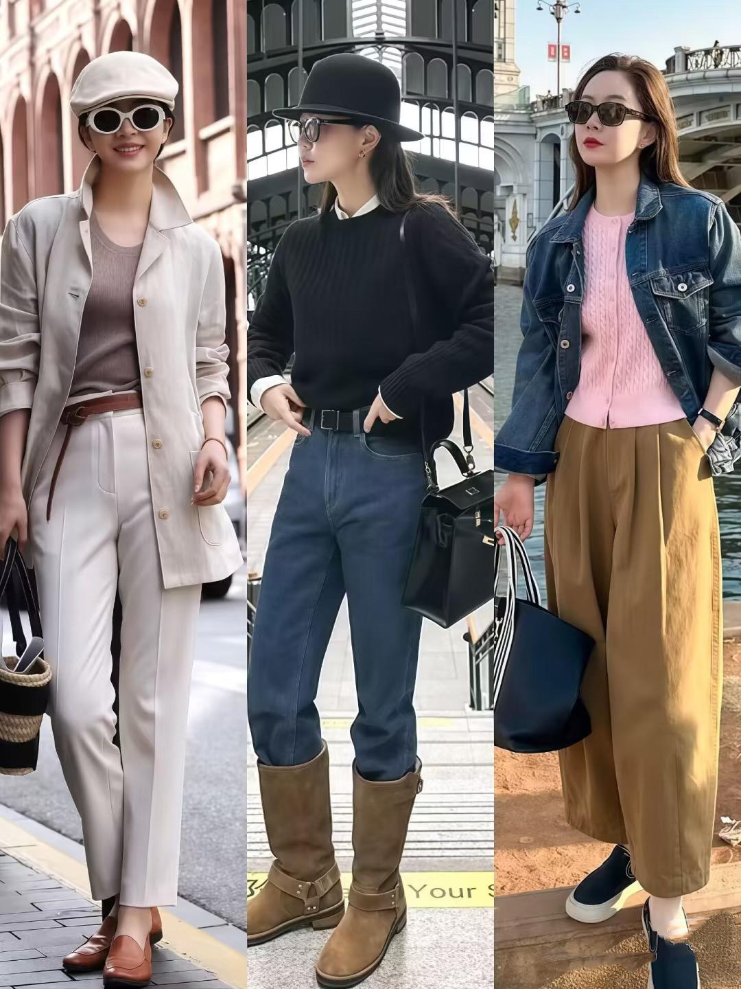 牛仔外套、條紋衫、西裝褲,簡單又整潔,是一種中性風的帥氣和颯美。這種條紋衫、修身的款式很低調,搭配西裝褲休閒又帥氣。