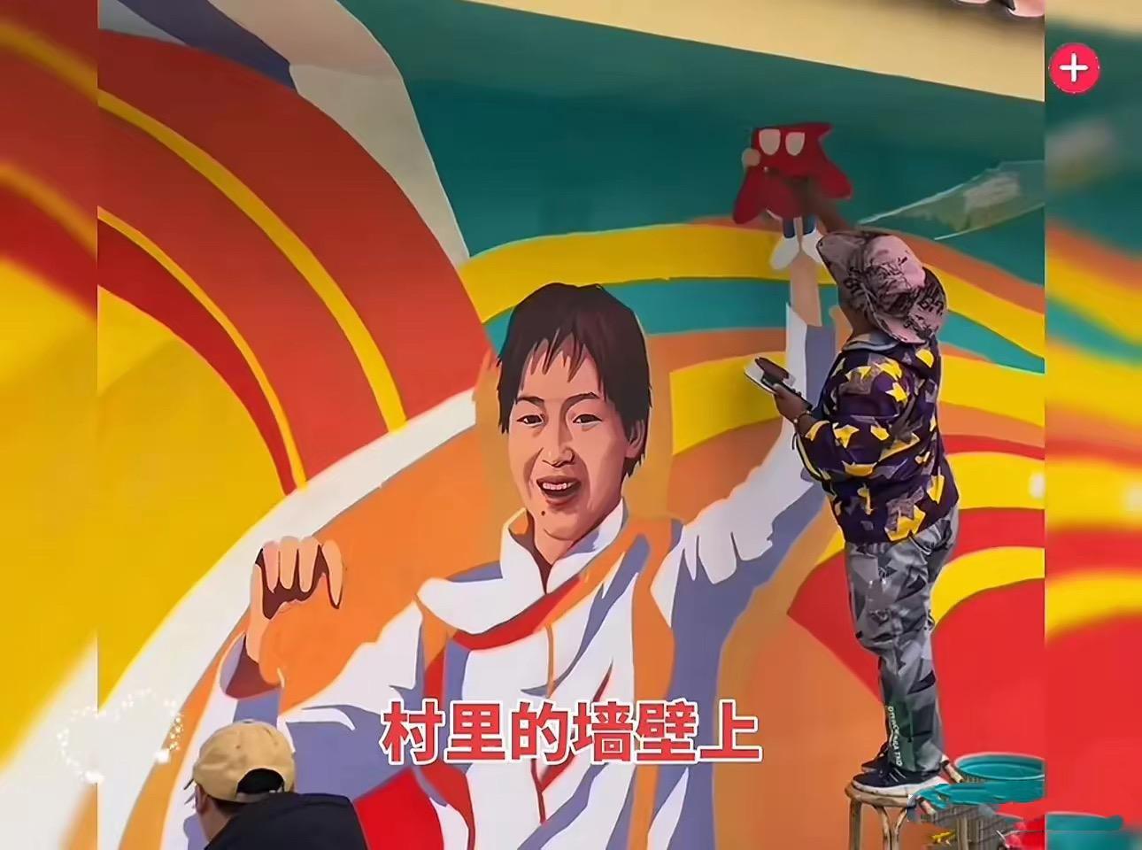 這次全紅嬋回到老家邁河村,村子裏也煥然一新變了模樣。以前學校的圍牆上,畫上了全紅嬋奪冠時候的畫面。