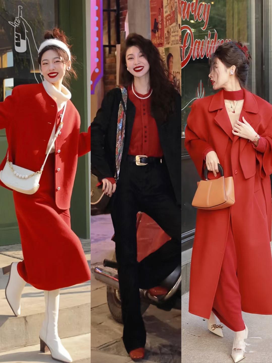 比較醒目又高級的配色,也非常適合新年穿着。年味十足的穿搭,就是要更加喜慶、歡樂、有氛圍。