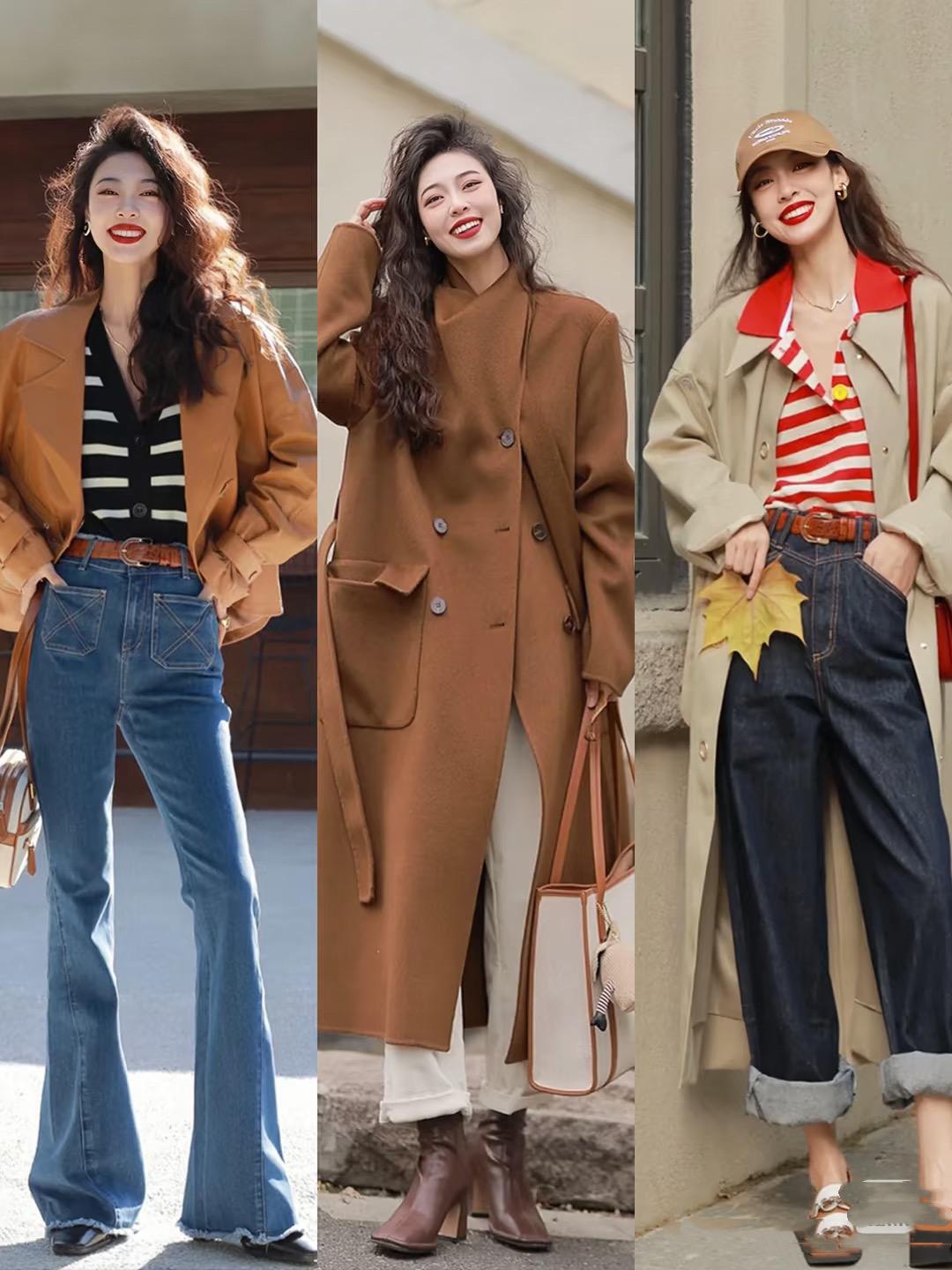 白色的羽絨服、紅色的毛衣,配上牛仔褲的真的是清爽乾淨,透着青春的氣息、可太甜美了吧。想要更高級顯氣質,就把長款大衣安排上。