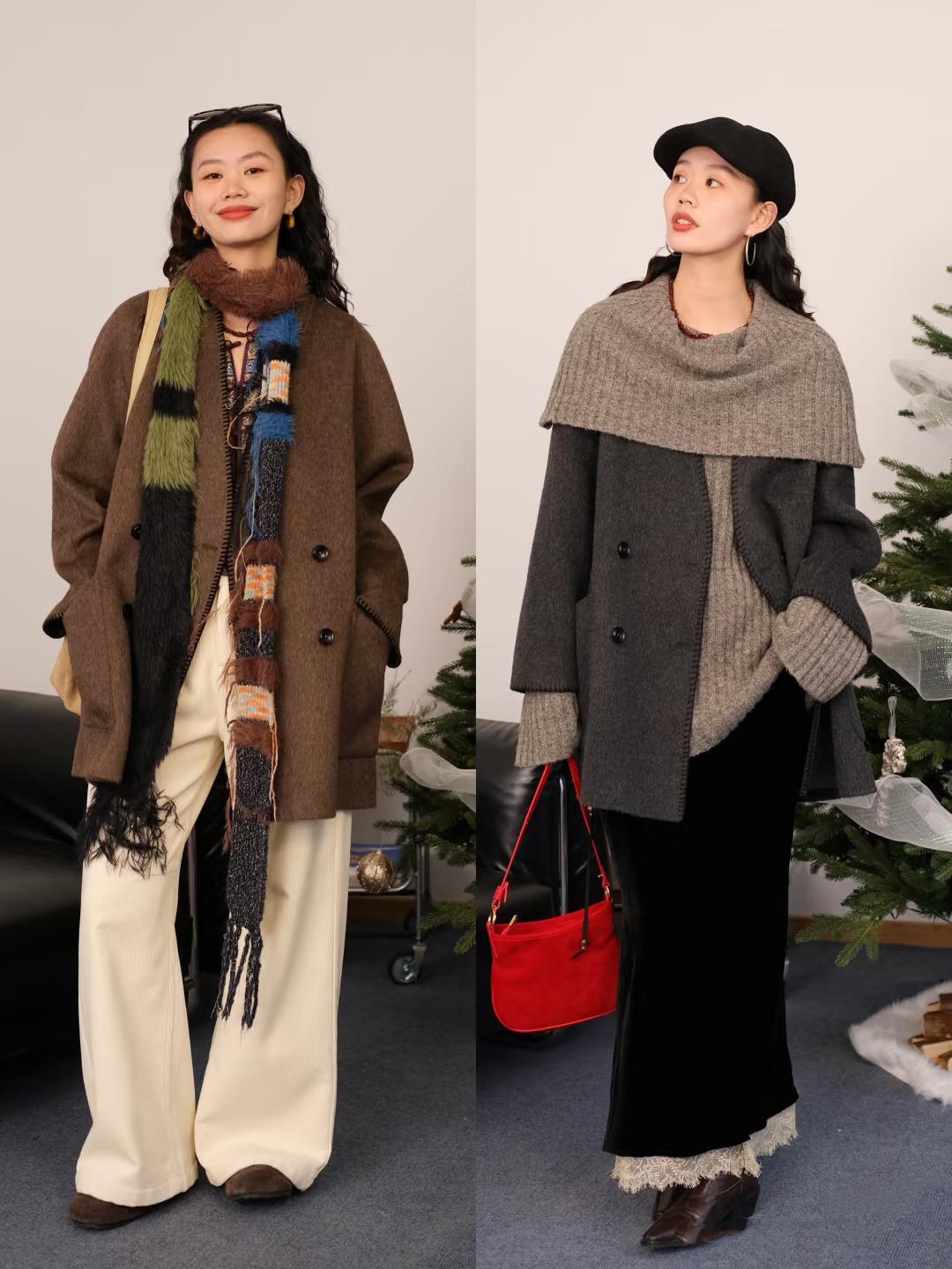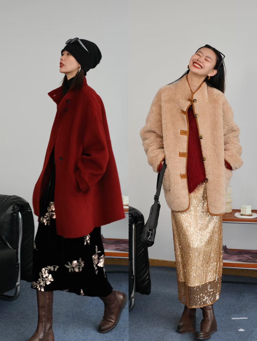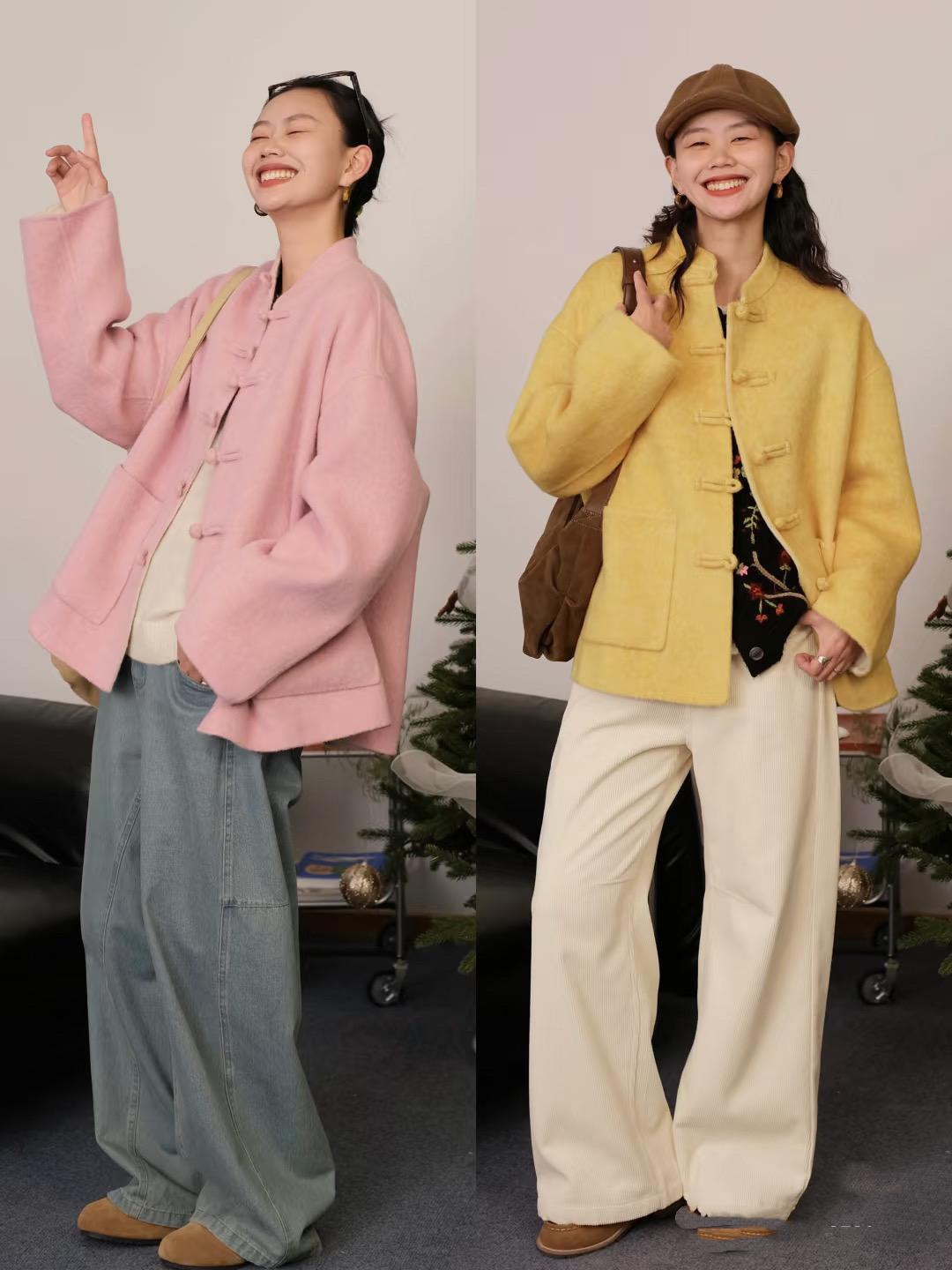 當糖果色撞上新中式,又是別樣的美。糖果色的毛呢外套、新中式元素的點綴,既大方又很體面。