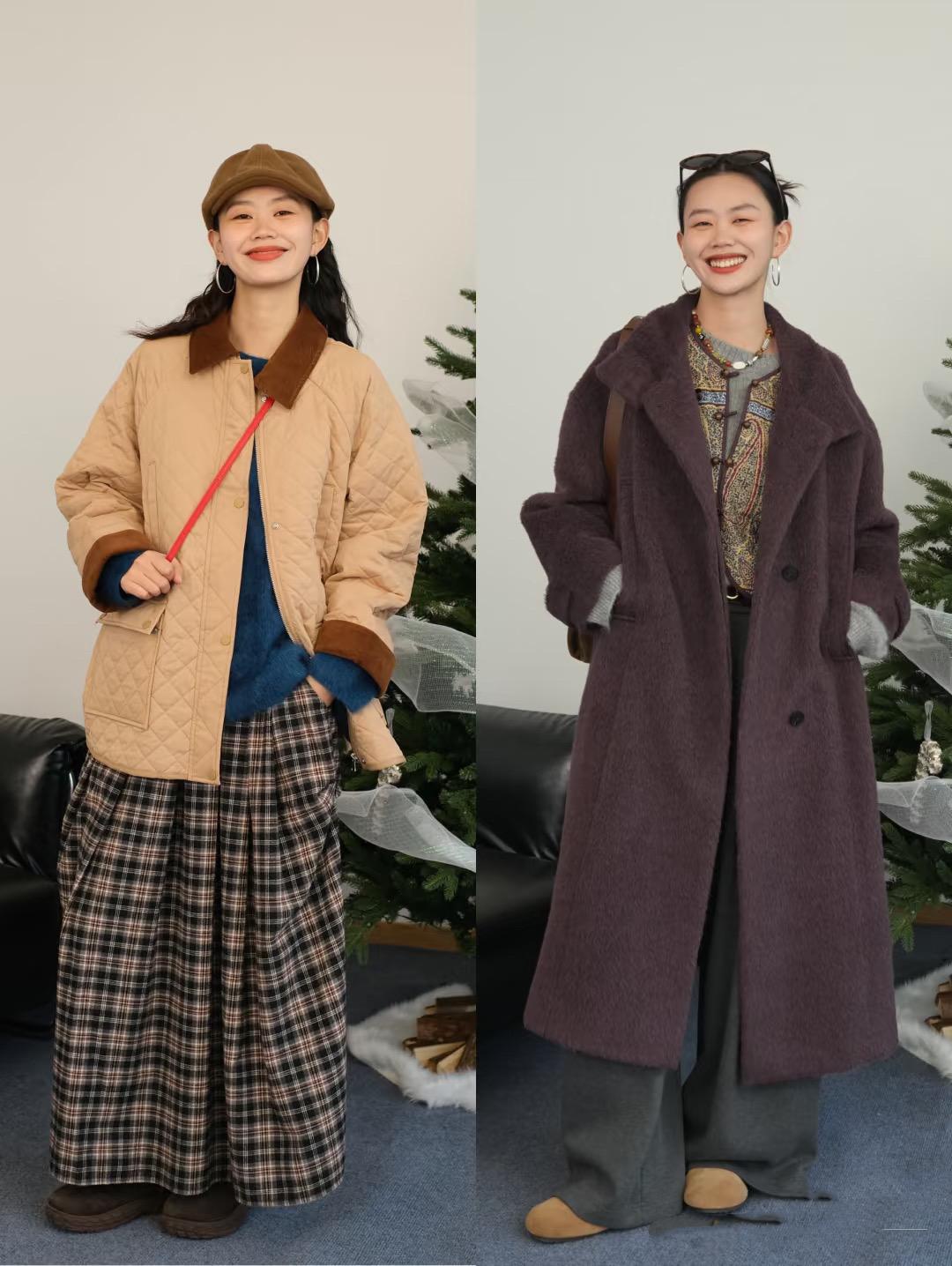 絎縫的棉服、厚實的大衣,就特別適合家裏比較冷淡小夥伴了。如果你剛好喜歡這種復古風情的穿搭,可以嘗試一下這樣的搭配組合。