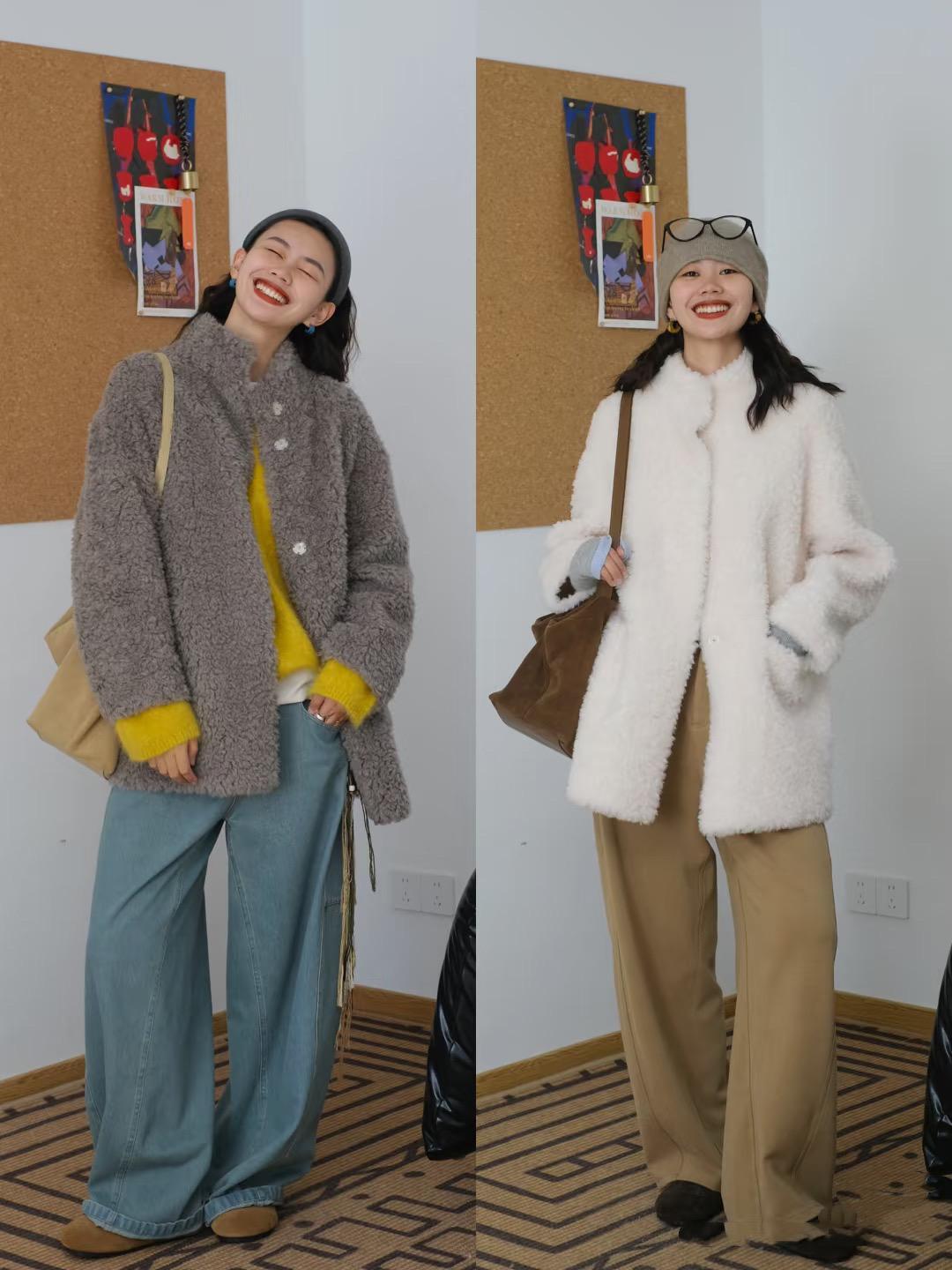 毛茸茸的外套,真的好甜美好減齡。豎領的毛毛外套、穿起來保暖又不臃腫。這種款式簡潔的毛毛外套,可以配直筒長褲,很甜美很減齡。