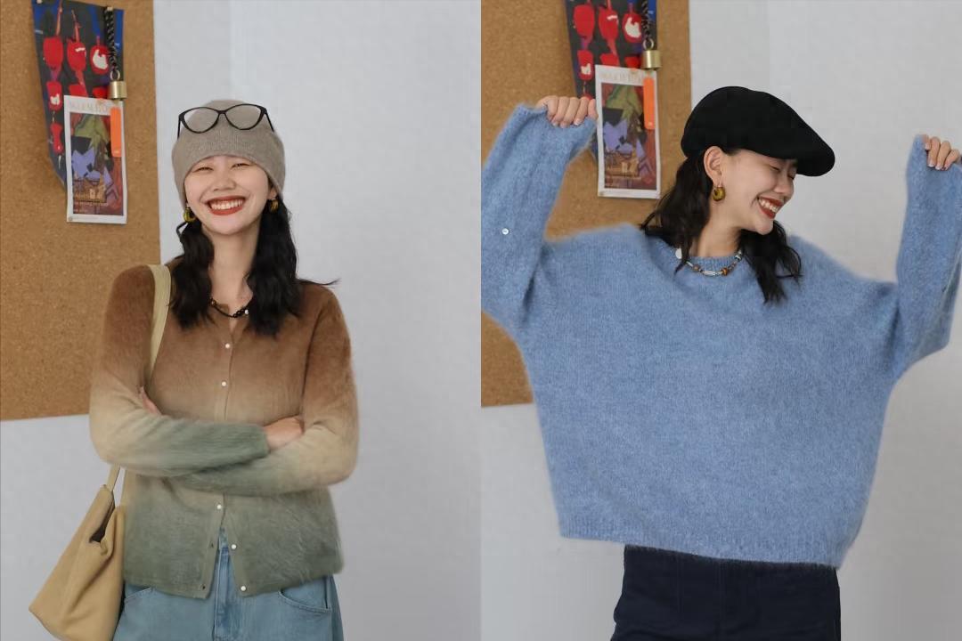 漸變色的針織開衫、高腰的闊腿牛仔褲,是一種鬆弛又大方的美。如果腿型比較優越,也可以用寬鬆針織衫配微喇叭的牛仔褲,很洋氣也大方。
