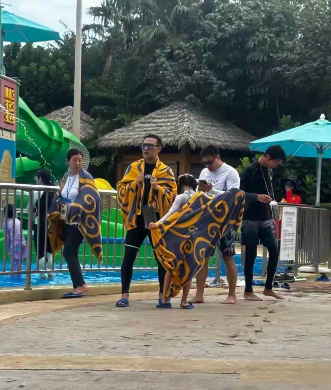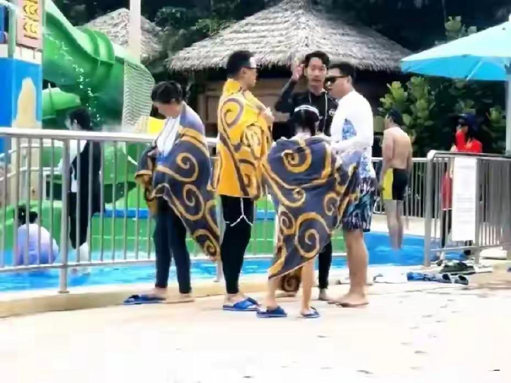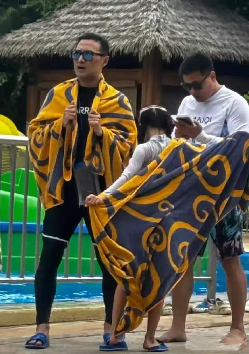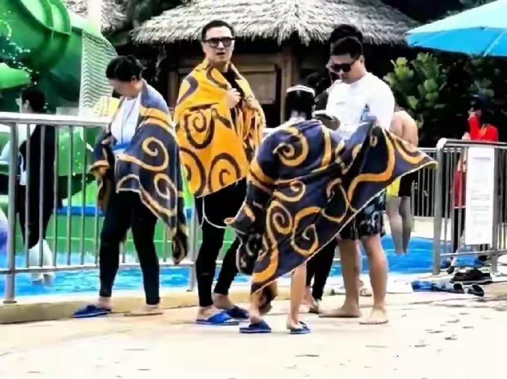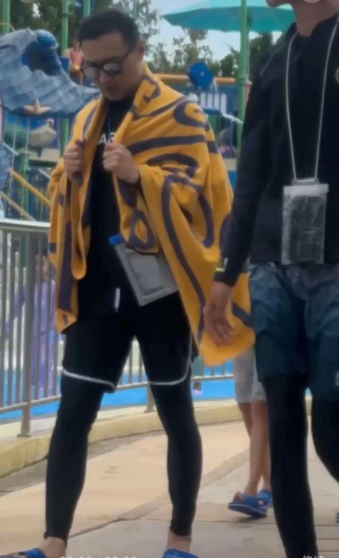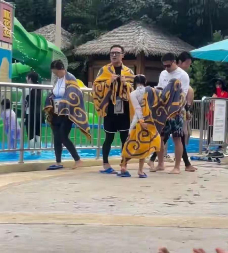 遠遠的看去,汪峯這身材也是有點發福了。他和醒醒在水上世界玩耍,兩個人應該是剛剛上岸,都披着浴巾。但是汪峯很明顯有一種瑟瑟發抖的感覺,抗冷能力還比不上醒醒。
