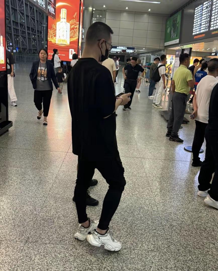 前不久,還有網友拍到汪峯在機場接孩子。汪峯的穿着比較隨意,他穿了一件寬鬆的黑色T恤、緊身的瘦腿褲,厚底的運動鞋,看側影還以爲是個小夥子呢。