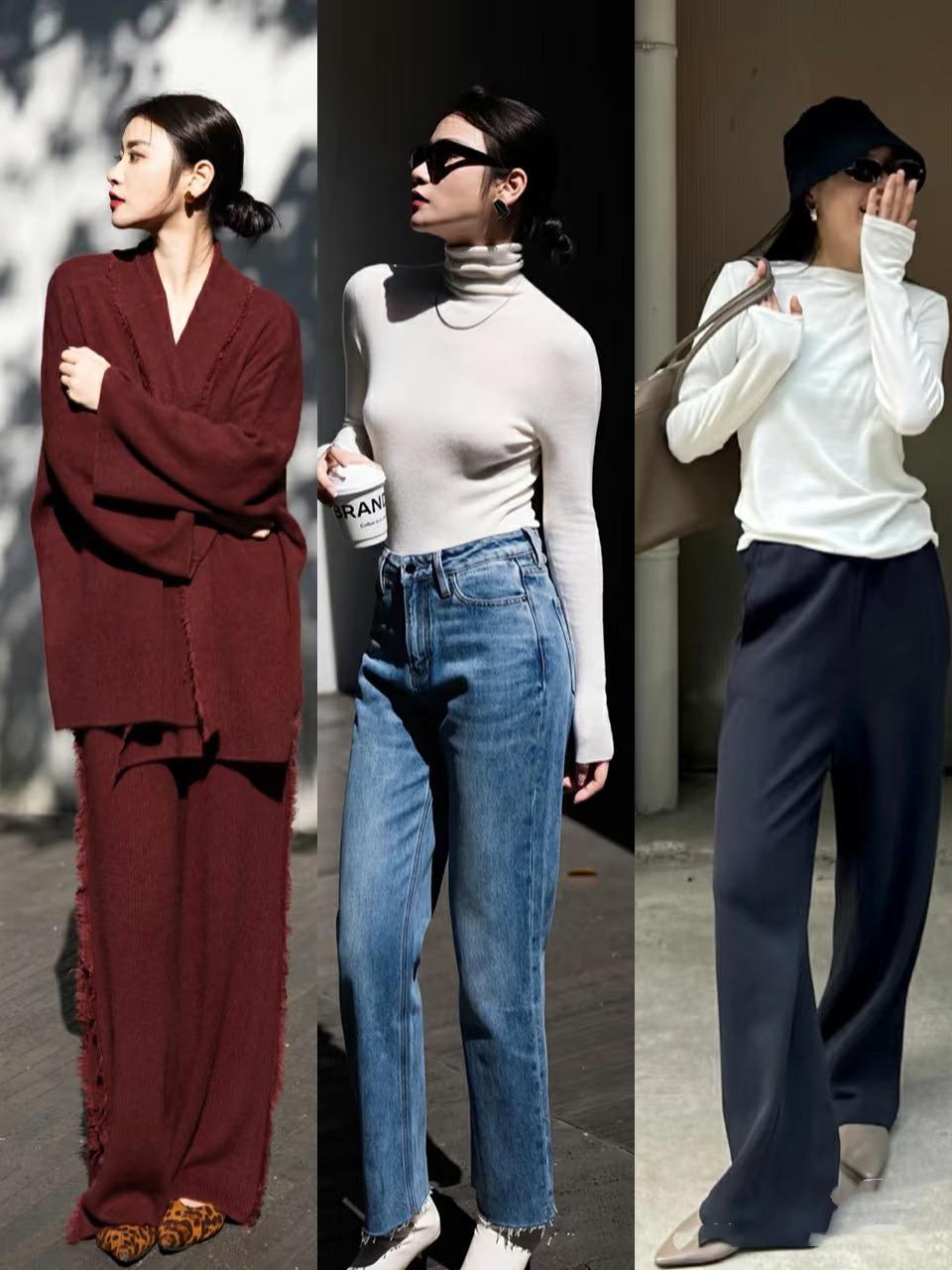 色彩上的延伸,也可以讓我們的穿搭更爲體面。比如黑色半高領打底衫、我們可以配同色系的闊腿褲,颯美又高級、帶着女強人的氣場,也是格外的高級。