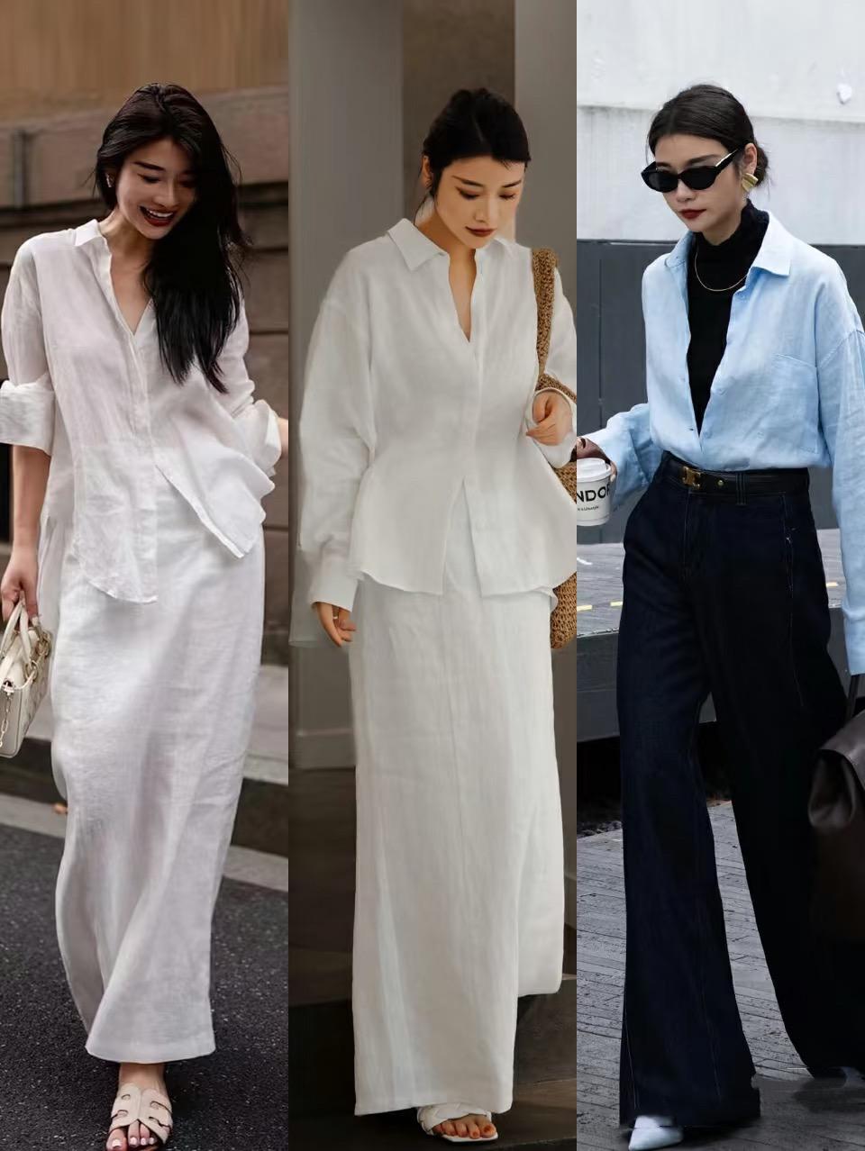 棉麻質感的襯衫,其實在年後也可以安排起來了。這種棉麻質地的襯衫、舒適柔軟又更加親膚,貼身穿、或者作爲疊搭來穿,都簡約高級。