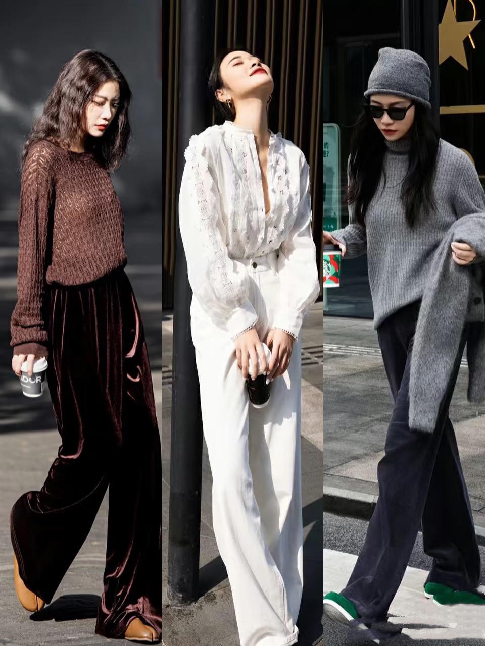寬鬆慵懶的針織衫、同色系的絲絨闊腿褲,簡約高級的又很顯氣質。像這種寬鬆針織衫,我們可以搭配鏤空的款式,帶幾分柔美、也格外的考究。