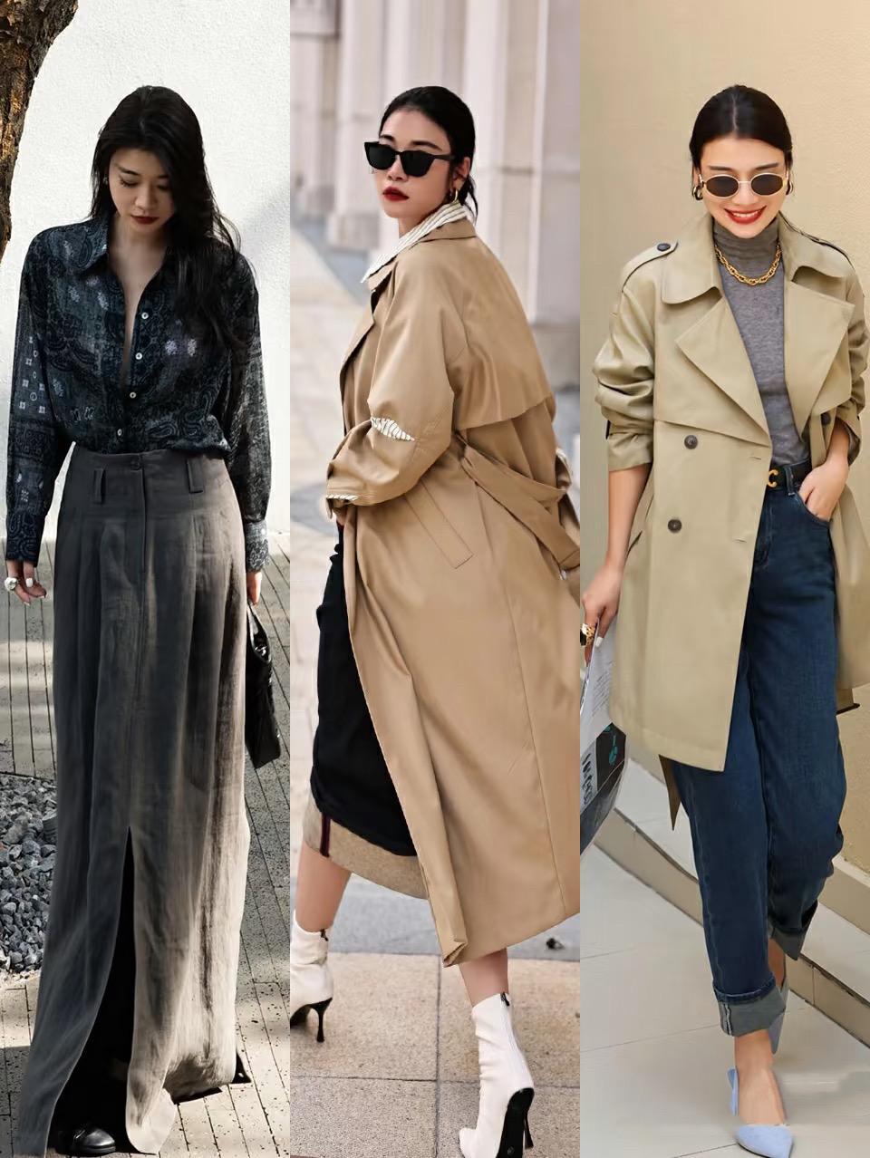 短款的風衣,配上卷邊的牛仔褲、很簡潔也顯腿長。長款的風衣,搭配細高跟的短靴、露出小腿線條,更添幾分精緻。