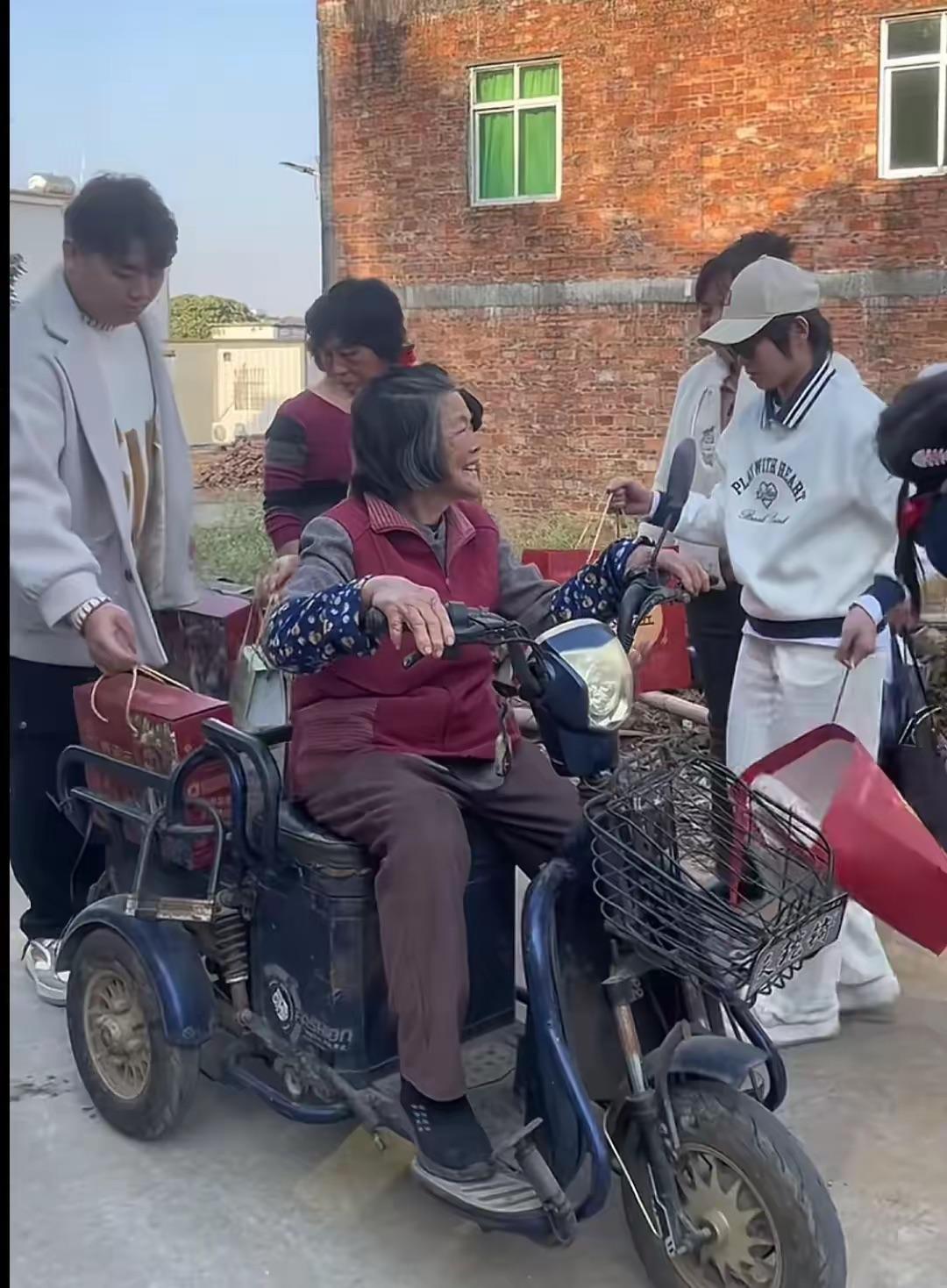 全紅嬋的外婆看到全紅嬋一家人也是特別開心,早早的就騎着三輪車來接他們了。大包小包的禮品,都放在外婆的三輪車上,外婆樂得笑開了花。