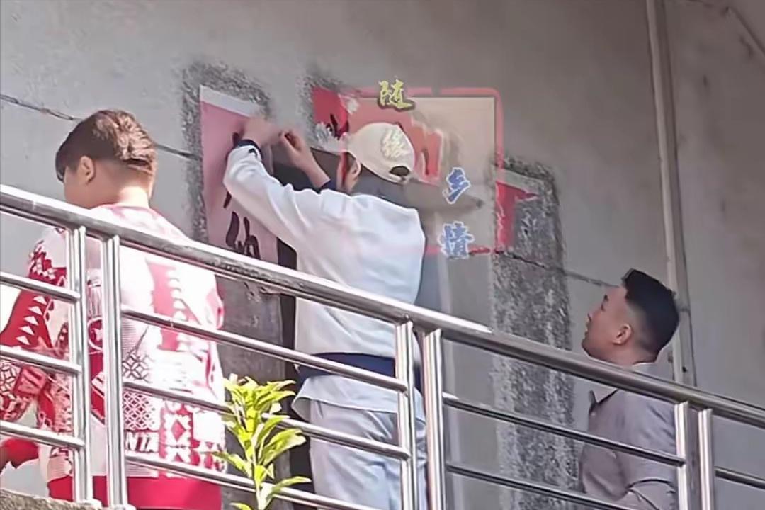 貼春聯、放鞭炮,都是過年的儀式感。雖然全紅嬋的哥哥穿上了很喜慶的紅毛衣、但是這些儀式感都是交給全紅嬋來完成的。