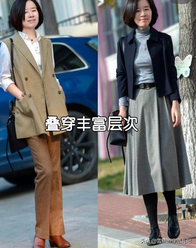 上了年紀的女人並不適合過於花哨以及前衛的服裝,所以大家可以利用疊穿的方式豐富整體的造型。儘量選擇全部基礎色系的服裝進行疊穿,比如黑色、灰色、米色的疊穿,簡約利落,而且自帶深淺對比,能夠穿出更加豐富的層次。也可以選擇同色系的搭配,降低色彩之間的差異疊穿起來更加和諧自然一些。