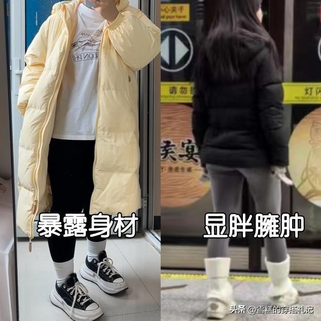 在寒冷的冬天,輕薄舒適的羽絨服出鏡率很高,可以藉助溫暖舒適的羽絨服給身體增加溫度,幫你抵擋更多的寒冷。但是不建議大家穿羽絨服配打底褲,畢竟打底褲過於緊繃,穿在身上很容易勒出腿部的贅肉,穿起來格外顯胖臃腫。而且羽絨服和打底褲的風格差異太大,盲目的搭配在一起也會給人突兀的感覺。