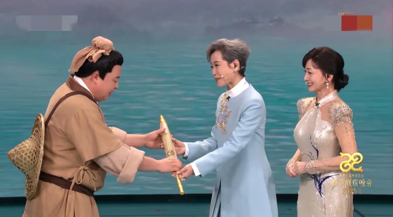 當然這次春晚舞臺上的白娘子和許仙,可並不是單純的爲了來給撒貝寧戴帽子,她們還表演了小品節目。