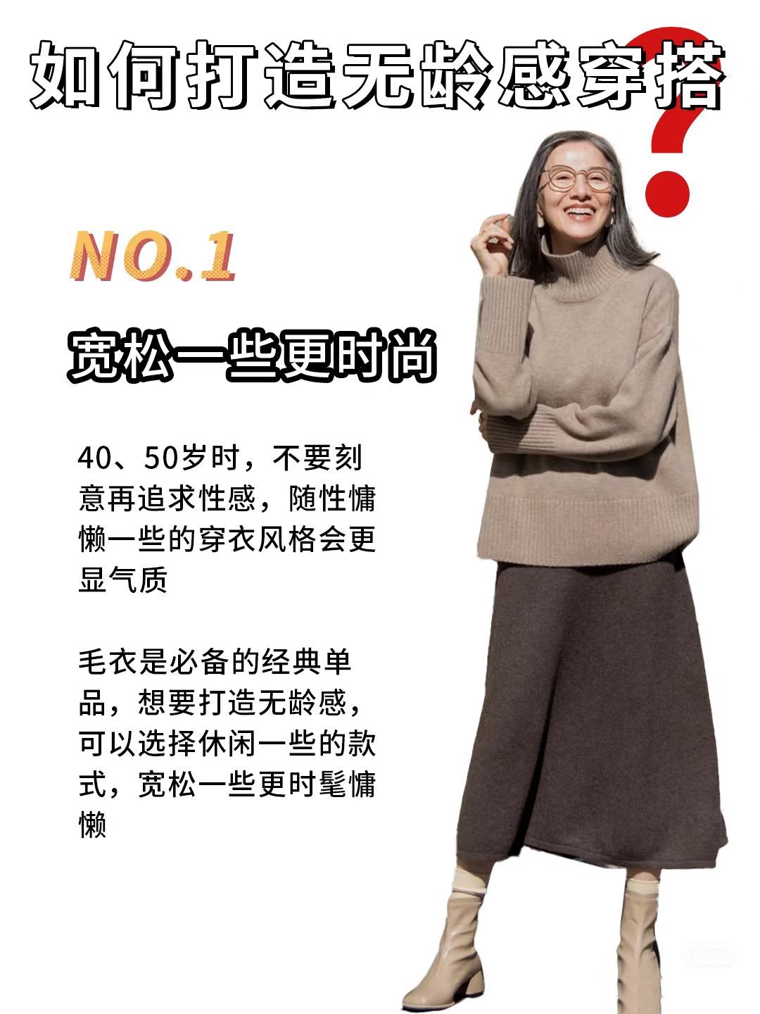 無齡感穿搭,視覺上不會有緊繃、壓抑感。我們可以嘗試利用休閒舒適的單品、打造出更時尚高級的元素。