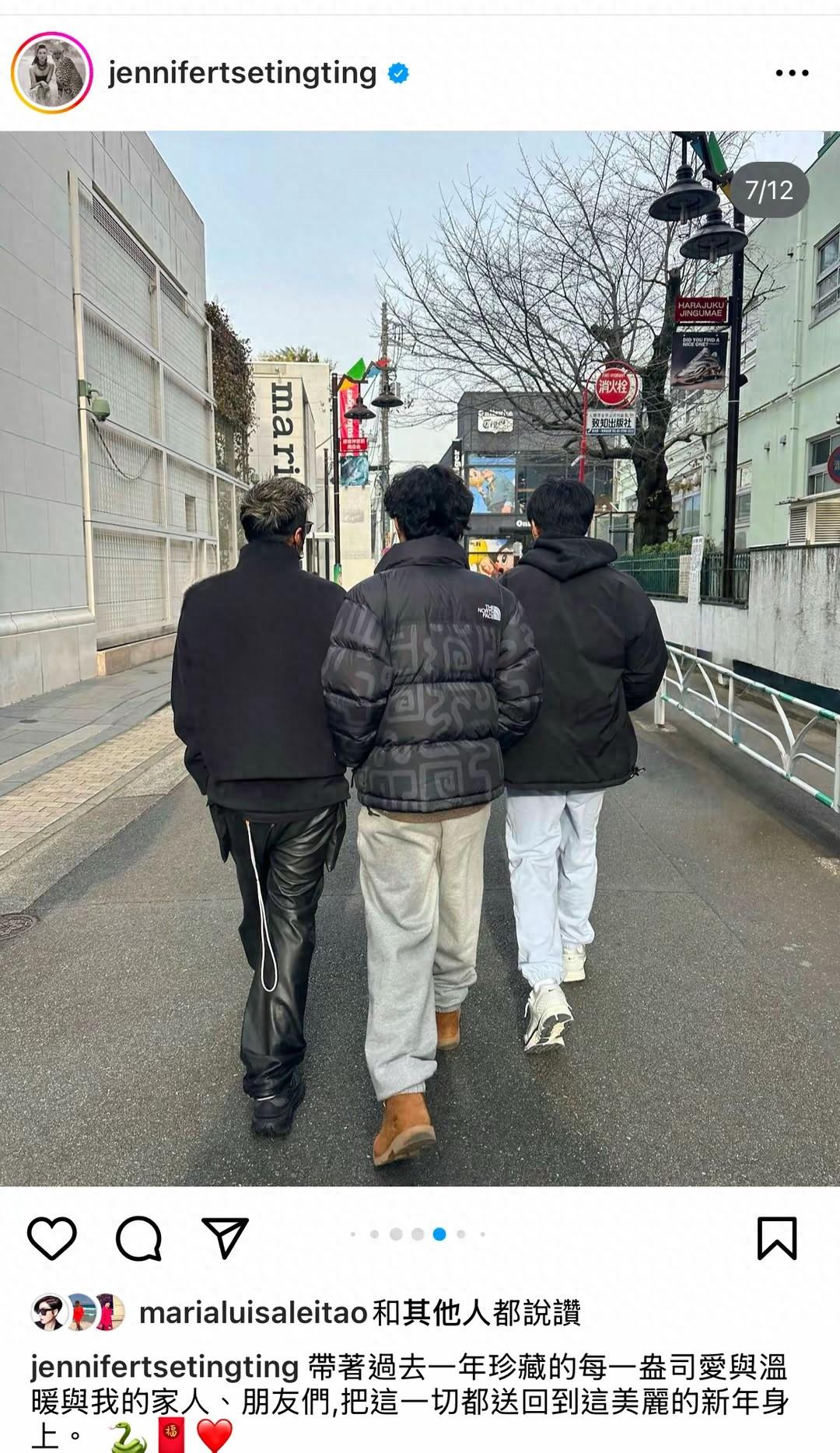 這張背影照片,是謝霆鋒的妹妹謝婷婷曬出來的。春節期間他們一大家人一起度假、非常的歡樂。
