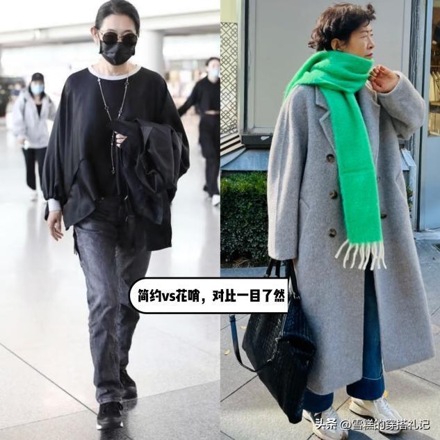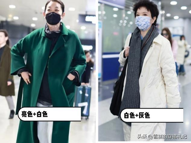 配色過於沉悶的老年裝也不建議大家繼續嘗試,整體過分厚重、沉悶,反而加劇了老年感,更推薦大家多試試淺亮色和基礎色的配合,有了深淺的配合後,可以讓整體的搭配更加吸睛洋氣,而且還可以更好的突出比例,像倪萍的腿部比較粗壯,所以爲了遮擋缺點,她經常會用白色、米色、灰色這樣稍微淺一些的外套和深色的褲子、半身裙搭配,巧妙的修飾身材,遮擋身上的贅肉。