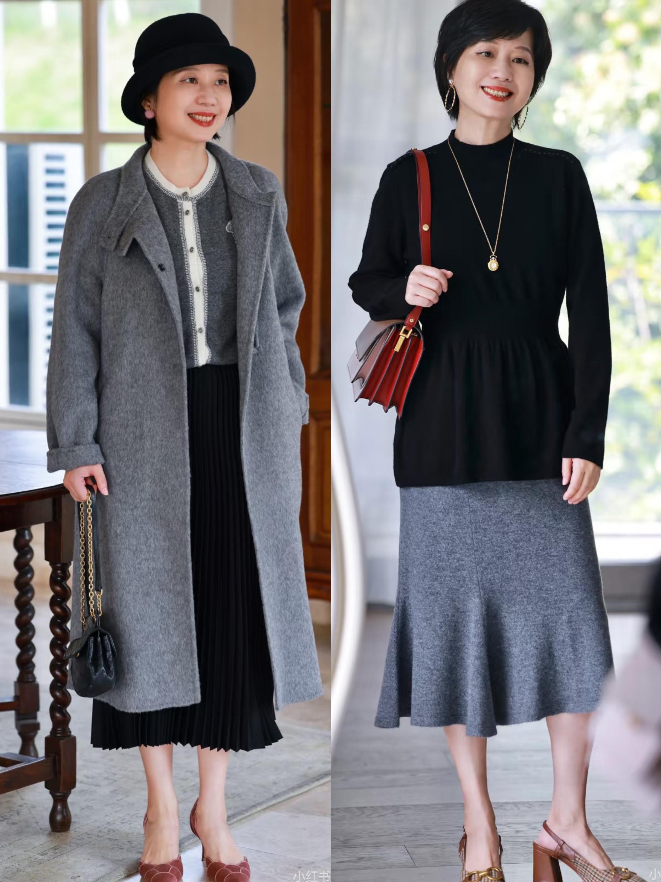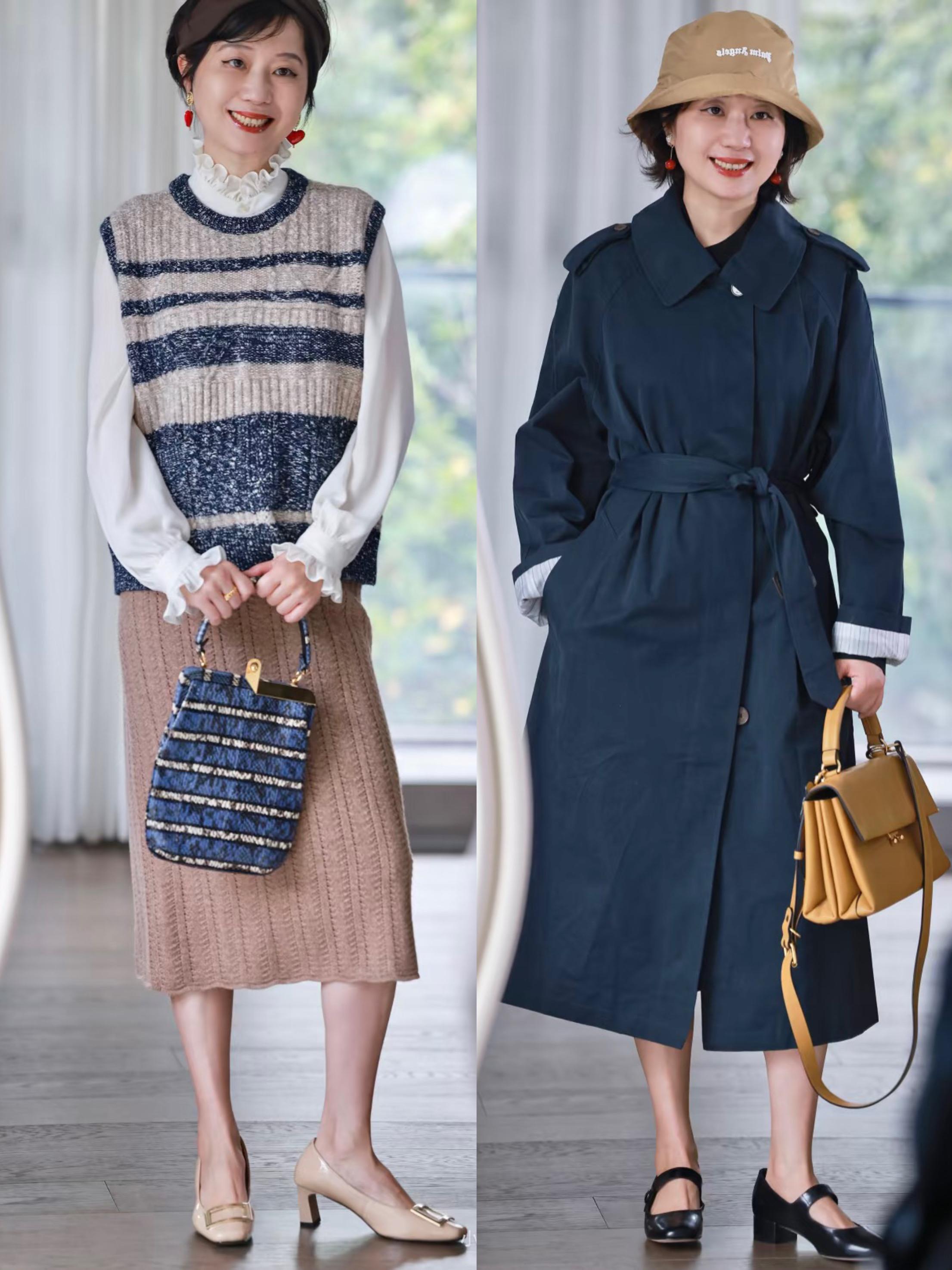一雙帶跟的鞋子,可以在無形中削弱年齡痕跡,打造出更加時髦精緻的美。過膝的半身裙、方跟的鞋子或者短靴,都可以更自由的組合。