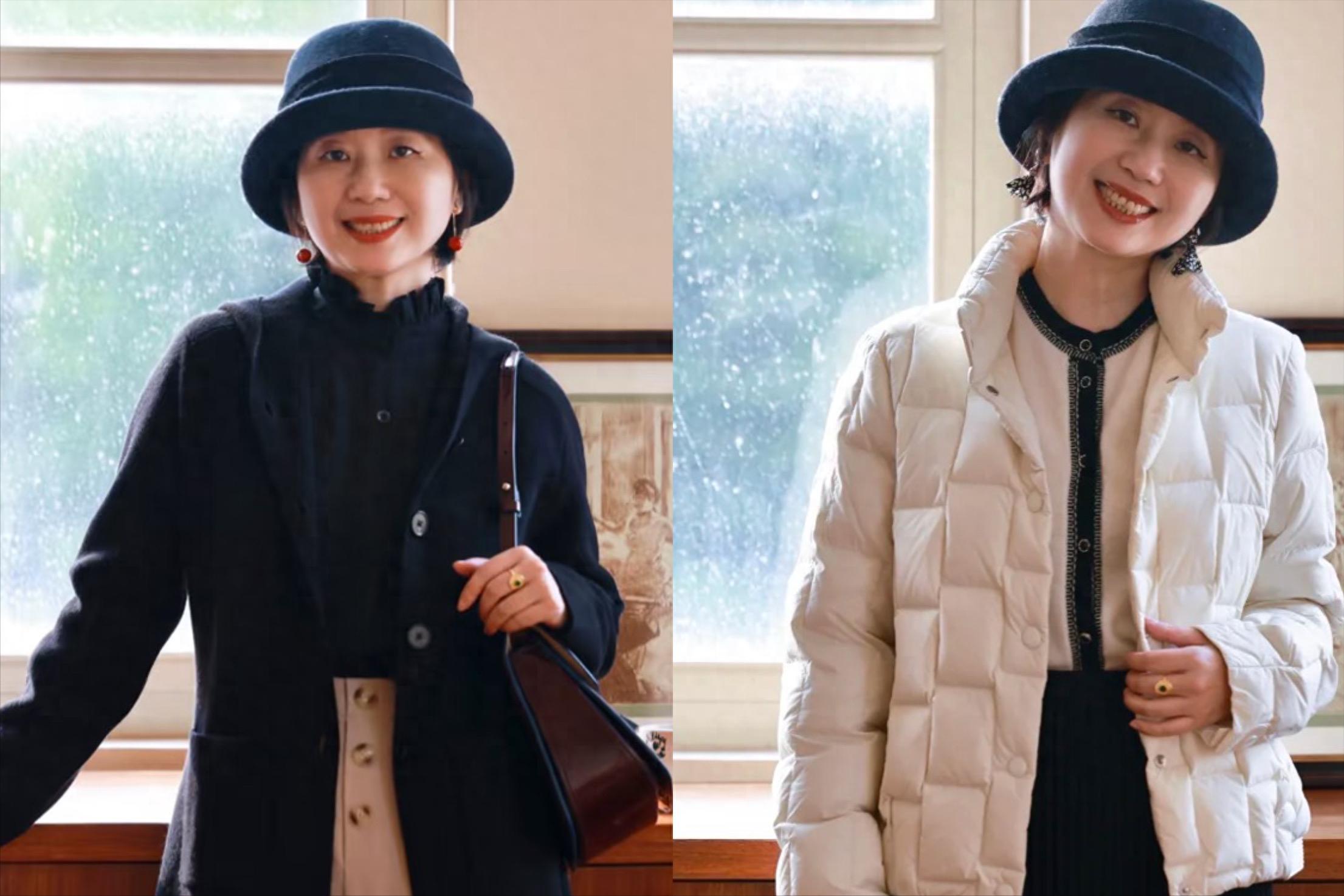 五六十歲的女人,頭戴帽、衣穿簡、鞋帶跟,體面優雅、不落俗套