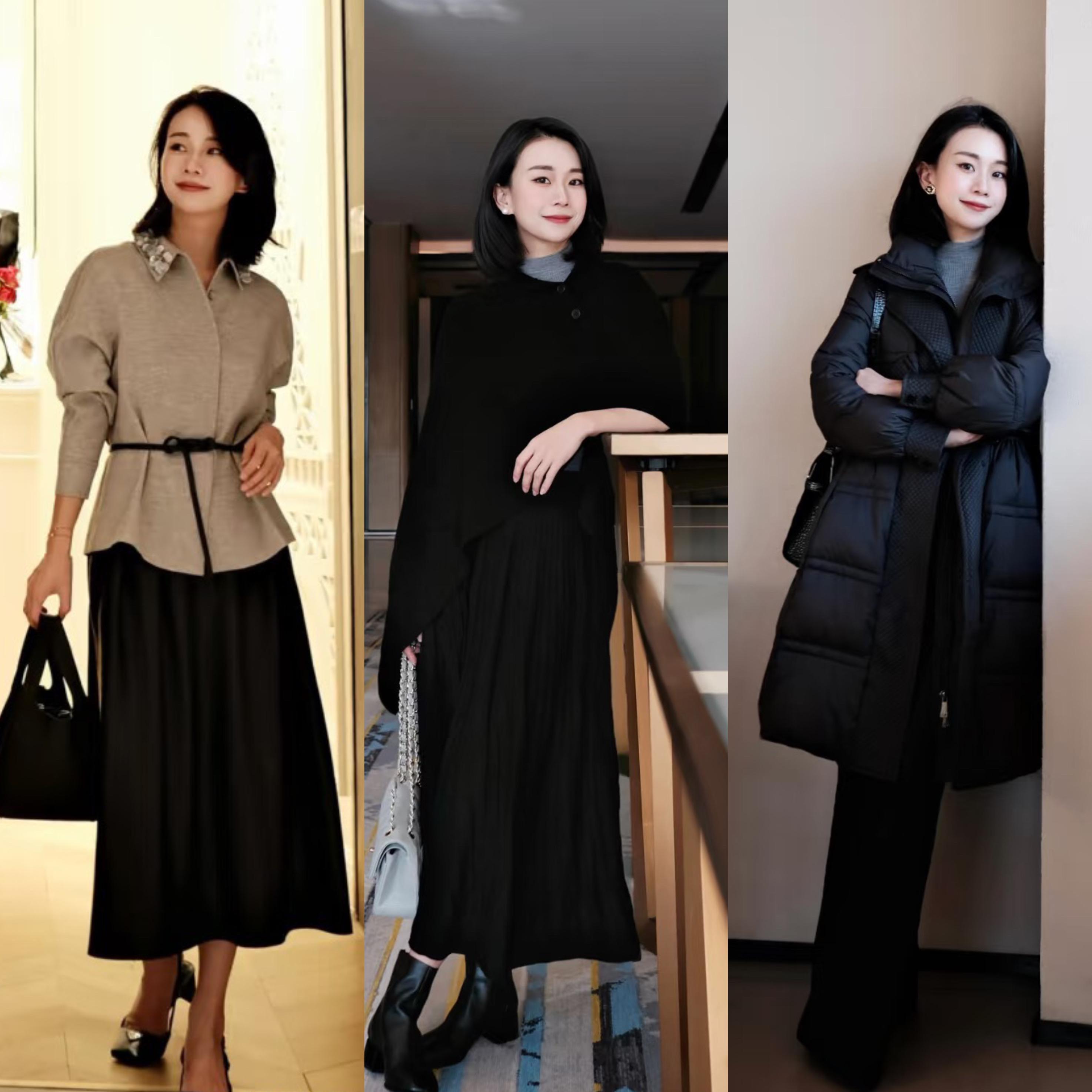 高級的黑色系,總是擁有無與倫比的力量,讓我們的穿搭經典而高級、在無形中綻放風采。寬鬆的羽絨服、合身的針織裙、甚至寬鬆的半身裙,都可以配經典的黑色系。