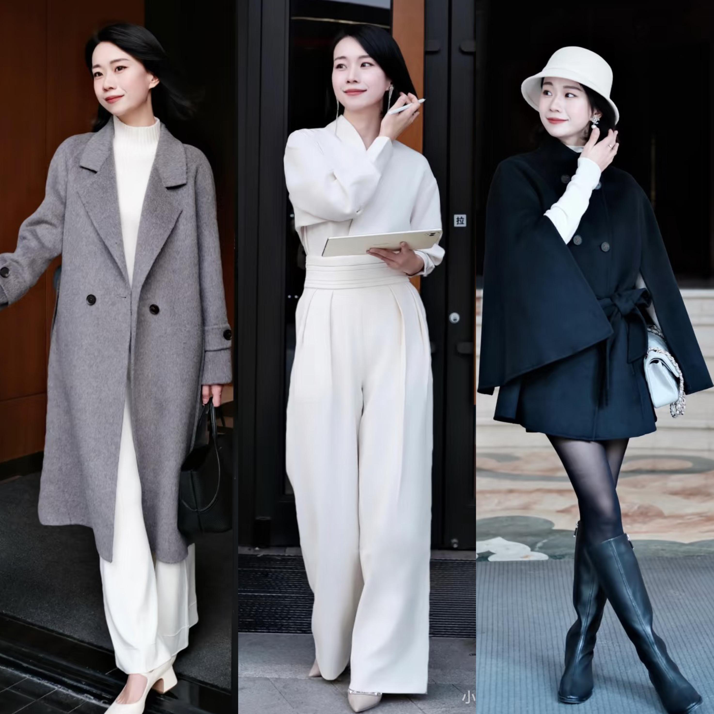 比如簡約系的長大衣,隨便配一條白色闊腿褲,就溫柔又颯美。如果是小個子女生,也可以用斗篷大衣配長靴,精緻種帶着千金範。