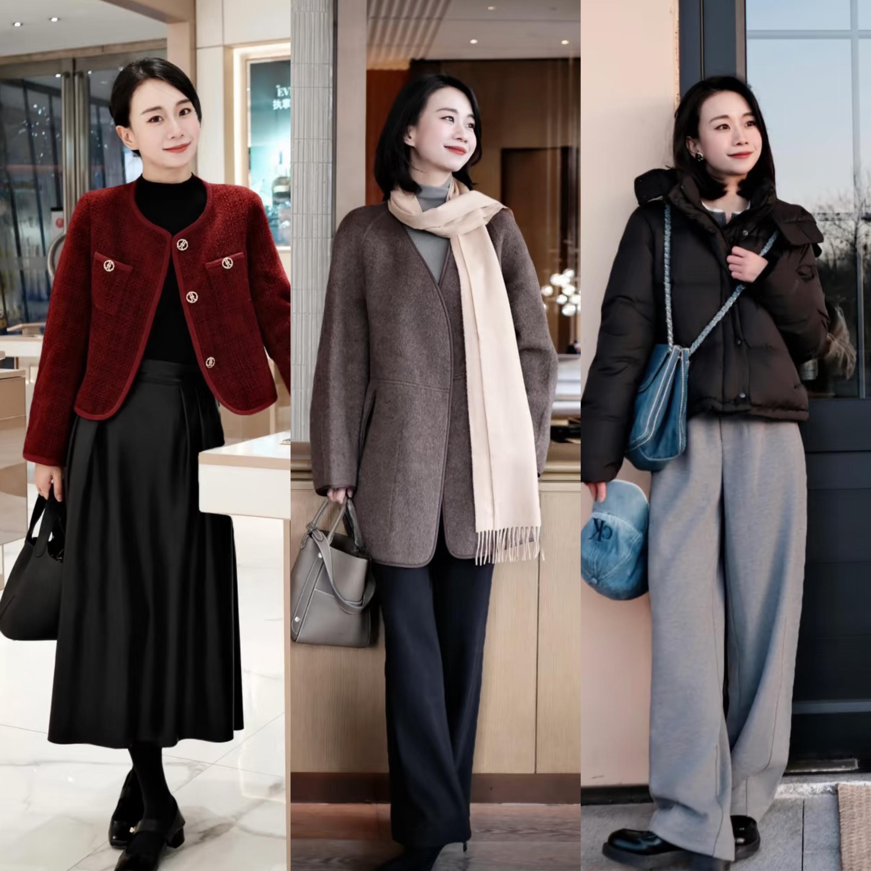 如果是溫度比較低的北方,過年期間我們的穿搭一定要注意保暖。這時候羊絨大衣、羽絨服都可以安排起來。
