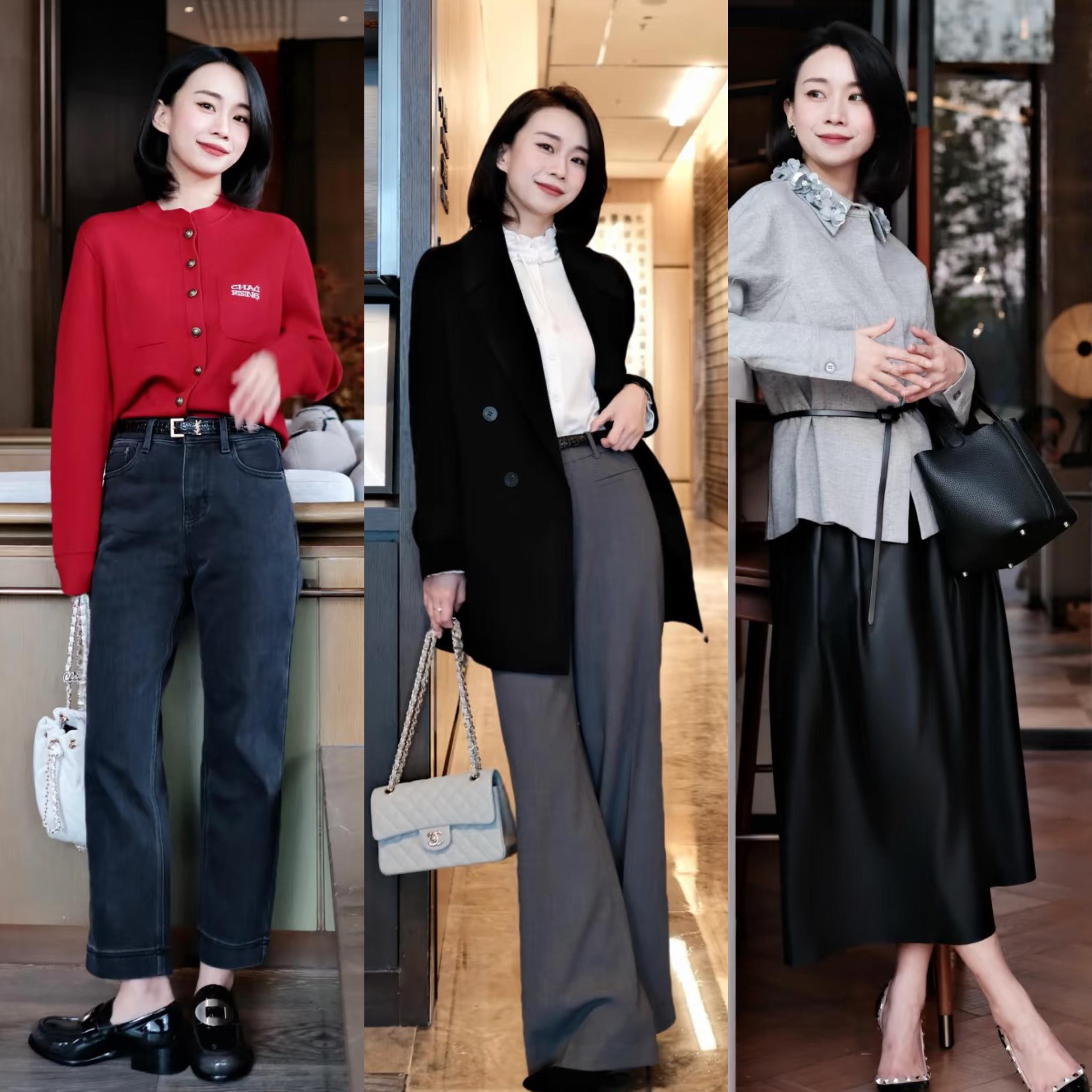 溫柔大方、又不失高級的穿搭,纔是更讓人喜歡的。利落的西服套裝、高級復古的花灰色毛呢大衣、甚至是帶一點小可愛的羽絨服,都可以讓新年穿搭更時尚。